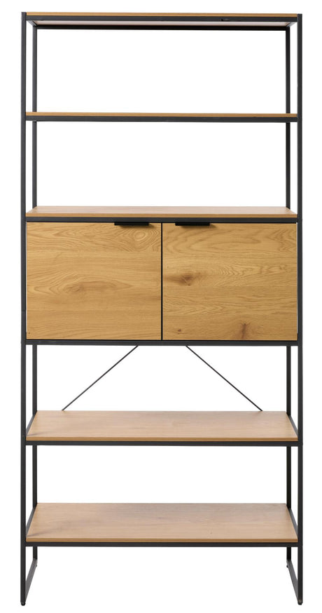 Cesura könyvespolc – Tölgy mintázatú felülettel és fekete fém vázzal