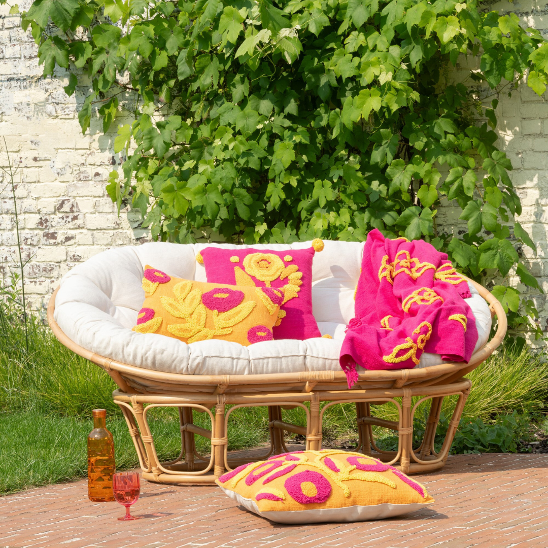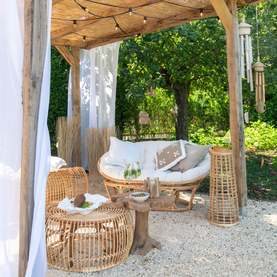 A Roni kanapé egy elegáns és kényelmes bútor, amely tökéletes választás lehet bármilyen otthonba. A kanapé natúr színű rattan és bambusz vázzal rendelkezik, amely természetes és légies megjelenést kölcsönöz neki. A puha bézs párna maximális kényelmet biztosít, így ideális helyszín a pihenésre és a kikapcsolódásra.
