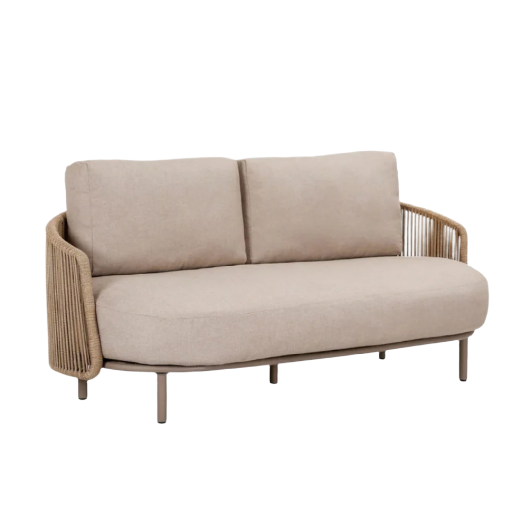 A 2 személyes Salada kerti kanapé stílusos és tartós megoldás a szabadtéri ülőhelyekhez, és tökéletes a kikapcsolódáshoz. Az acélváz és a szőtt poliészter kötél kombinációja kiváló alapot nyújt, míg a vastag párnák komfortos használatot biztosítanak. A Salada fotel változatban is elérhető.