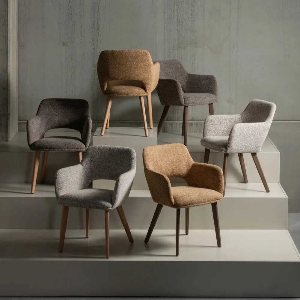 A Murat étkezőszék a holland Woood márka kollekciójából származik, mely fotel szerű kialakításával szilárd és kényelmes ülést kínál. A szék natúr színű fa lábakkal rendelkezik, és puha szövettel van kárpitozva. A Murat egy stílusos és komfortos étkezőszék, mely nem hiányozhat a modern otthonokból. Sötétbarna lábbal is elérhető.