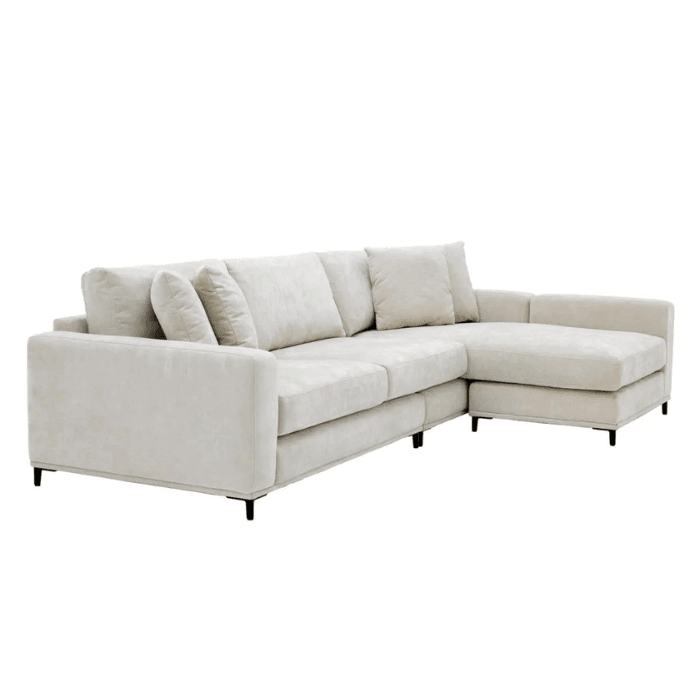 A tágas Feraud szövet kanapé bőséges helyet kínál neked és szeretteidnek. Egyenes vonalaival és modern megjelenésével ez a dizájner kanapé remekül mutat nyitott terű tetőtéri terekben, de bárhol megállja a helyét. Minőségi kárpitozással és fekete lábakkal rendelkezik. Tökéletes választás, ha elegáns és kényelmes ülőhelyre vágysz. A minimalista dizájn minden enteriőrbe könnyedén illeszkedik. A moduláris elemének köszönhetően könnyedén használhatod jobbos és balos sarokkanapéként is.