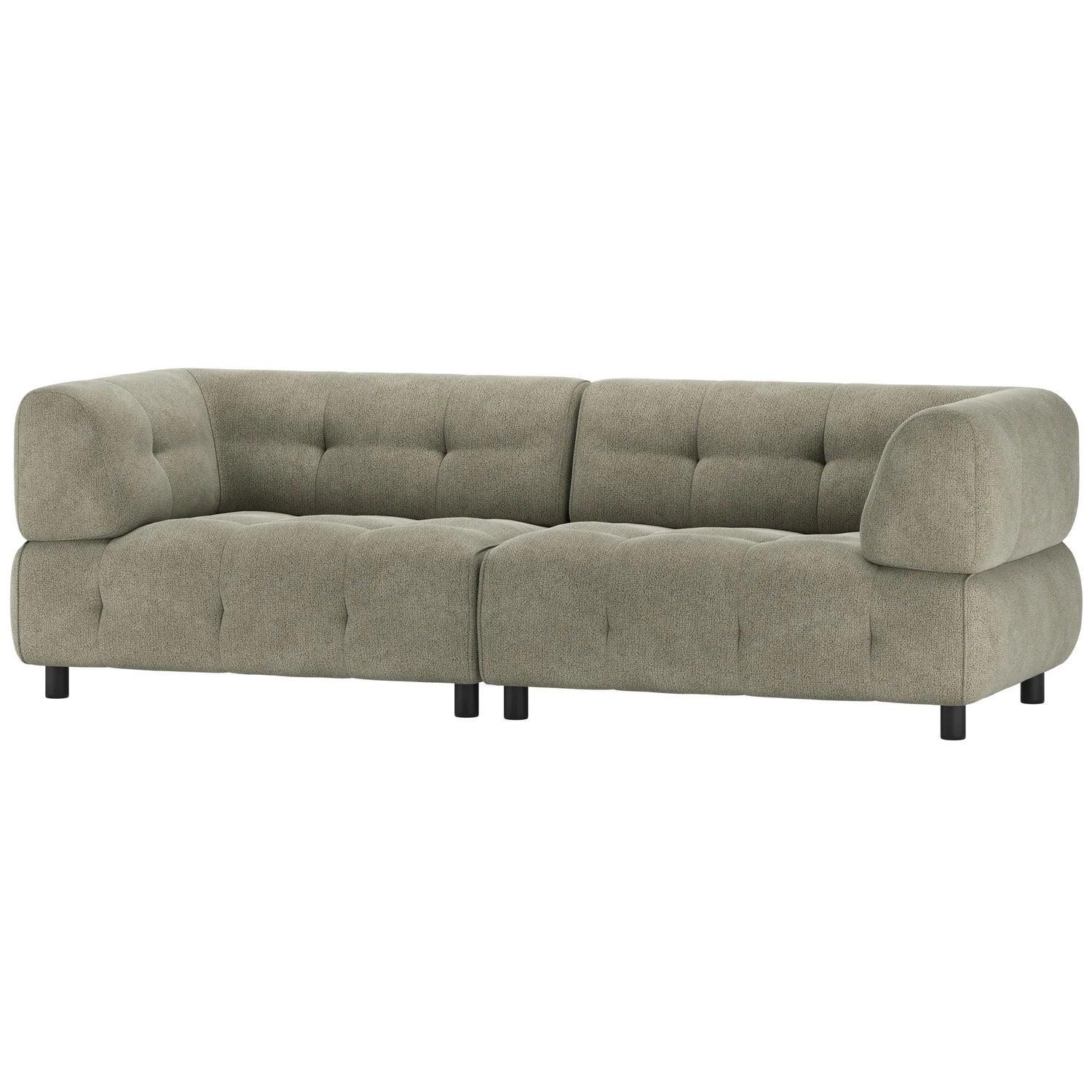 A Louis kanapé Earth szövettel készült. Az Earth szövet poliészterből készül, erős és sűrű szövésű. Ez a sima és kompakt anyag kellemesen tapintható, és hosszú élettartamot biztosít. A 100 000 Martindale értéknek köszönhetően rendkívűl strapabíró darab. A kanapé magassága 73 cm, szélessége 244 cm, és ülésmagassága 43 cm. A karfa vastagsága 30 cm, a lábmagasság pedig 9 cm.