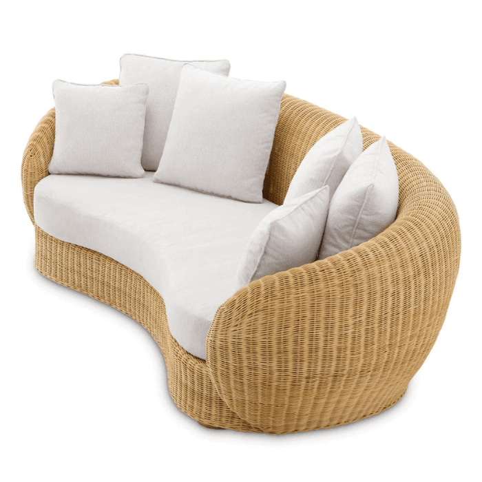 Fedezd fel az Eichholtz Rafael szövet kanapé eleganciáját. Ez a luxus kanapé finom kézműves kidolgozással készült, amely a természetes rattant és a sentier cream szövetet kombinálja, exkluzív megjelenést biztosítva. Tökéletes választás bármely nappaliba, ha egy elegáns, mégis természetes hatású darabot keresel. Időtlen dizájnjával, kifinomult részleteivel emeli enteriőröd színvonalát.