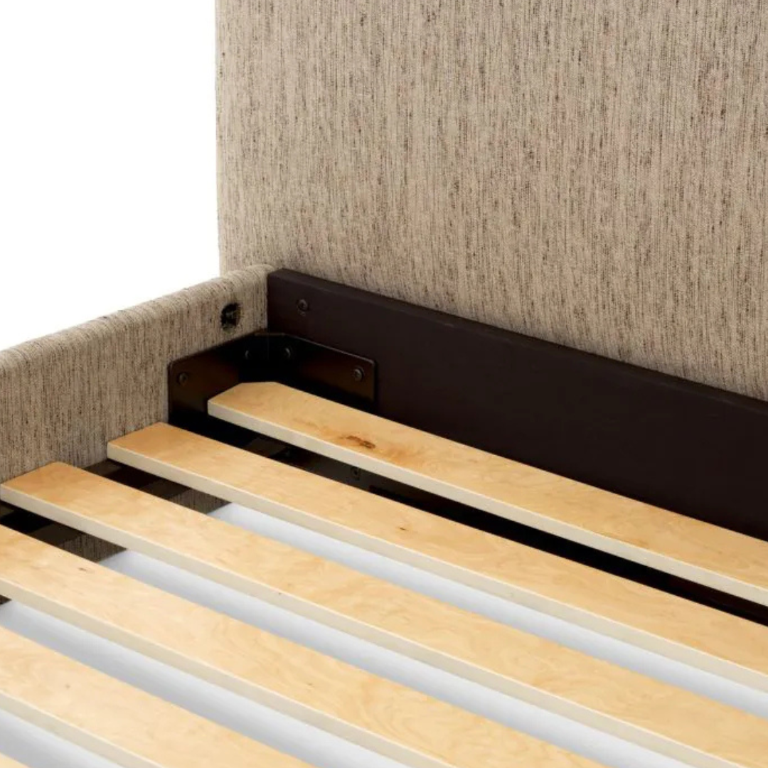 Az Ashford ágy a Beckett szövetünket mutatja be nyugtató bézs homok árnyalatban, amelyet a fejtámla jellegzetes kalapált fém szélével emelnek ki. Puha textúrája és fémes részletei finom, időtálló vonzerőt kölcsönöznek neki, finom eleganciával. Gondosan úgy tervezték, hogy boxspring ágybetéttel párosítva kivételes kényelmet nyújtson, ugyanakkor levehető fa lécekkel is rendelkezik azok számára, akik a matrac egyszerűségét részesítik előnyben. 180 x 210 cm-es rugós ágyrácshoz vagy matrachoz alkalmas.