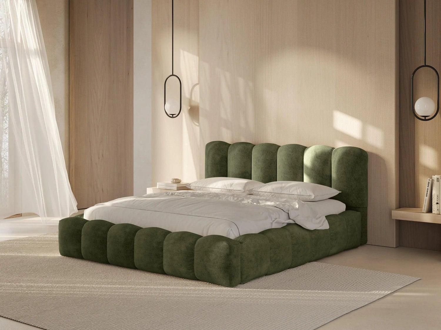 A Lupine 180x200 cm-es fekvőfelülettel rendelkező ágy modern eleganciája és kifinomult kényelme egyedi hangulatú hellyé varázsolja hálószobádat. A kárpitok mély varrással és vastag tömésekkel látványos hatást keltenek. Lenyűgöző dizájnja harmóniát hoz, és kiemeli a pihenőhelyen szükséges nyugalmat. A magas fejtámla kényelmes tartást biztosít, masszív felépítése pedig garantálja a tartósságot és a stabilitást. A zsenília kárpittal borított, ágyneműtartós Lupine ágy hatféle színben, és négyféle méretben kapható.