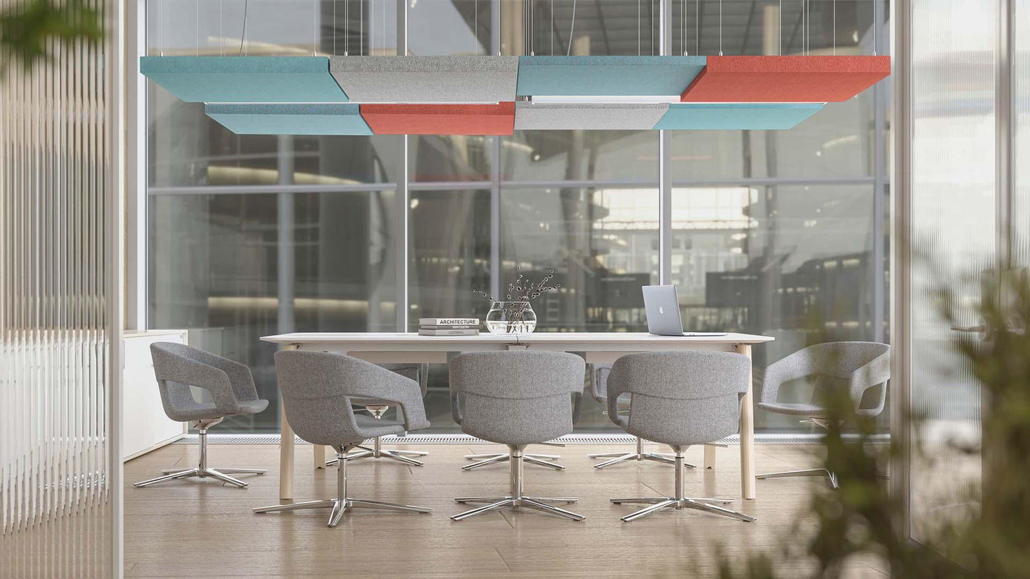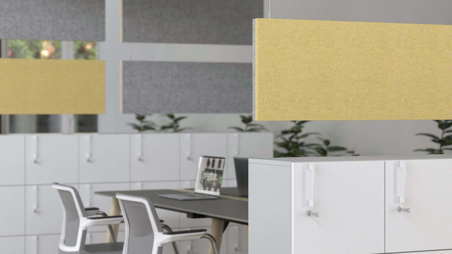 A MODUS akusztikus panelrendszer falpanelekből, vízszintes mennyezeti panelekből és függőleges mennyezeti (kétoldalas) panelekből áll. Amellett, hogy segítik a jobb irodai akusztikát, kiváló eszközként szolgálnak terek kialakításához és finom tervezési megoldásokhoz az irodában. Ez különösen fontos a nyitott terű irodák esetében, ahol az alkalmazottak háttérzajnak vannak kitéve, ami megzavarja a koncentrációt. C osztályú hangelnyelést kínálnak.