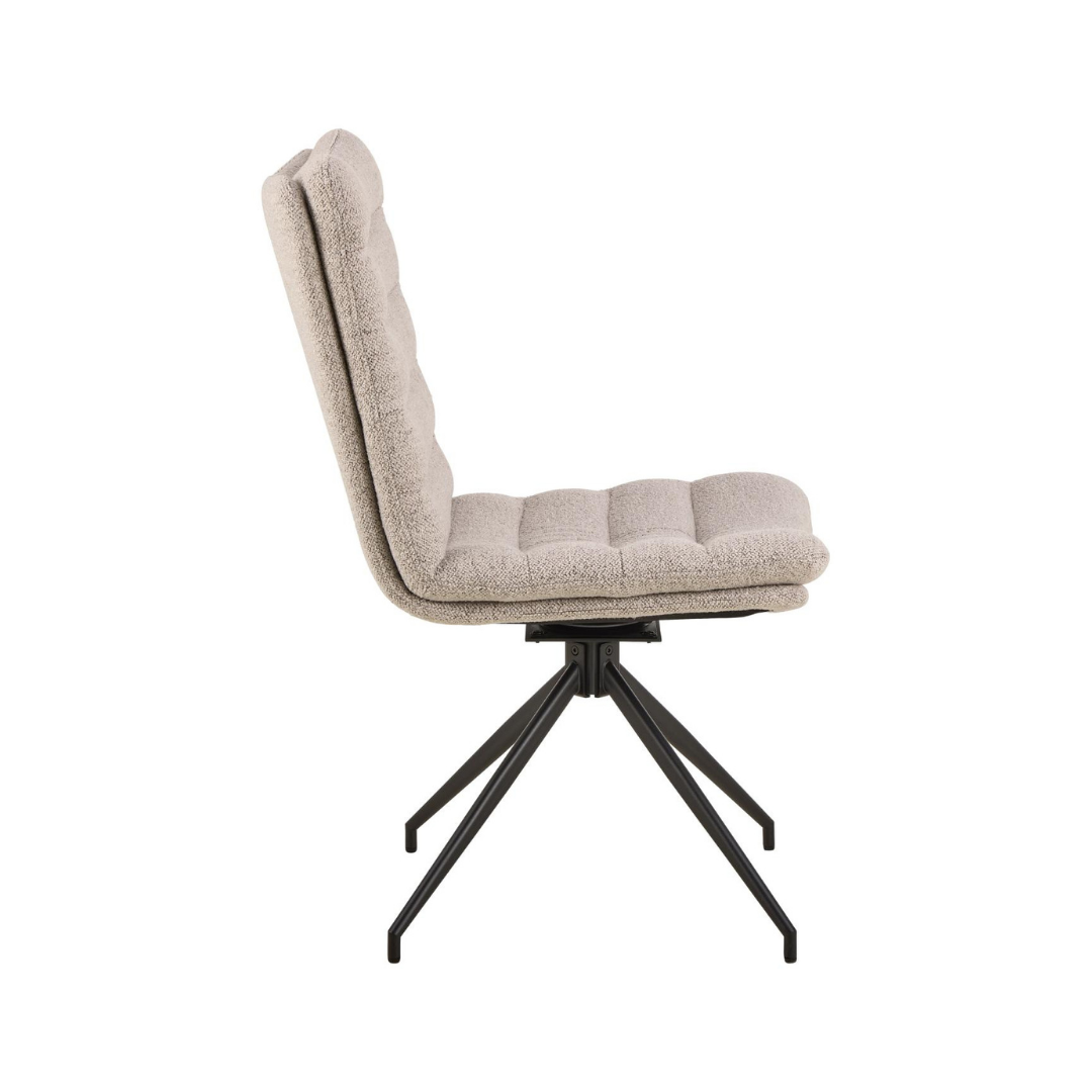 Töltsd meg eleganciával, és kényelemmel a szobádat a Grafton székkel. Hívogató megjelenését az alacsony, vízszintes varrással díszített ülés és az ívelt szélesebb háttámla jellemzi. Az érzékek, és a komfort kedvéért a széket puha, bézs színű szövet díszíti. A lakkozott kontrasztos, forgatható fekete lábak teszik teljessé az összhatást.