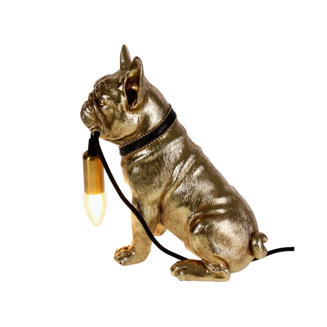 A Francis asztali lámpa egy látványos és modern világítótest, amely tökéletes kiegészítője, és dísze lehet bármilyen belső térnek. A lámpa műgyanta anyaga biztosítja a tartósságot, míg a részletgazdag kialakítású bulldog egyedülálló megjelenést kölcsönöz neki. Arany vagy fekete színben kapható. A 1.5 méteres kábellel rendelkező termék az izzót nem tartalmazza.