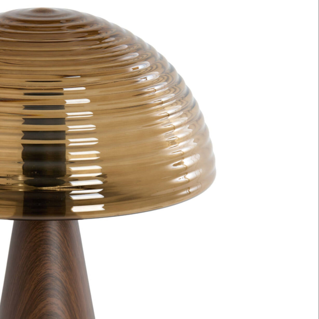 A Mueda asztali lámpa a klasszikus eleganciát képviseli. Robosztus fém lába fekete színű, sötétbarna szín esetében pedig fa hatású fóliával van bevonva. Kiválóan illeszkedik a modern és a klasszikus stílusban berendezett belső terekbe egyaránt. Strukturált üveg búrája kifinomult hatást kelt és sajátos bájjal ruházza fel ezt a lámpát. Működéséhez 1 db E27 izzó szükséges.