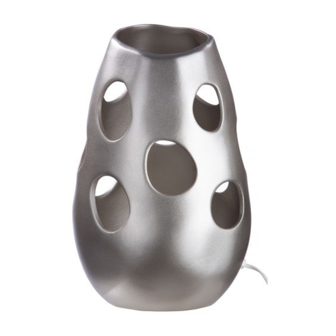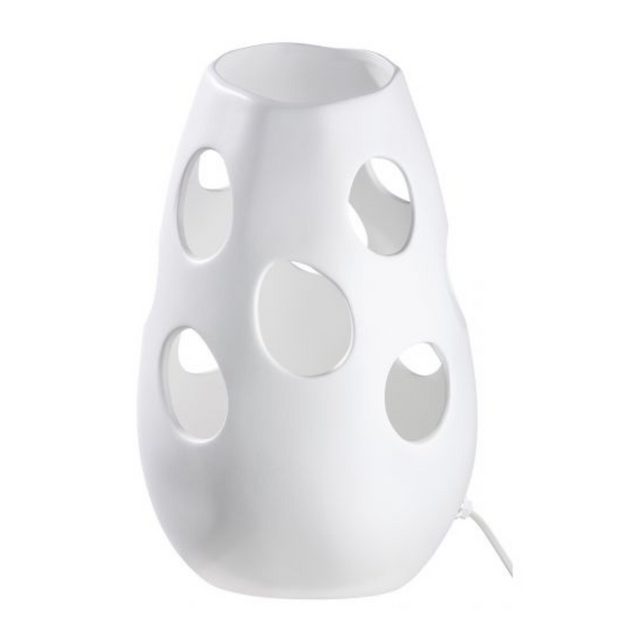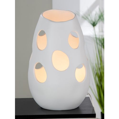 A Nazareth asztali lámpa organikus formáival hívja fel magára a figyelmet. Kerámia búrája időtálló és elegáns megjelenésű. A fényt lyukakon keresztül sugározza, amik egyedi mintázatot vetítenek a környezetébe. Bájos megjelenése, akár egy gyertyatartó, meleg hangulatot teremt a terekben. Választhatod fehér vagy pezsgő színű kivitelben. Kompatibilis 1 darab E27 foglalatú, max. 60W izzóval, amely nem tartozéka.