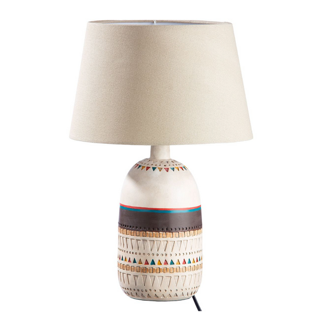 A Riad asztali lámpa, tradicionális részleteivel hívja fel magára a figyelmet. Műgyantából készült lámpateste egyedi megjelenésű, bohém mintázattal rendelkezik. Természetes színű szövetből készült búrája teszi igazán modernné. Kompatibilis 1 darab E27 foglalatú, max. 60W izzóval, amely nem tartozéka.
