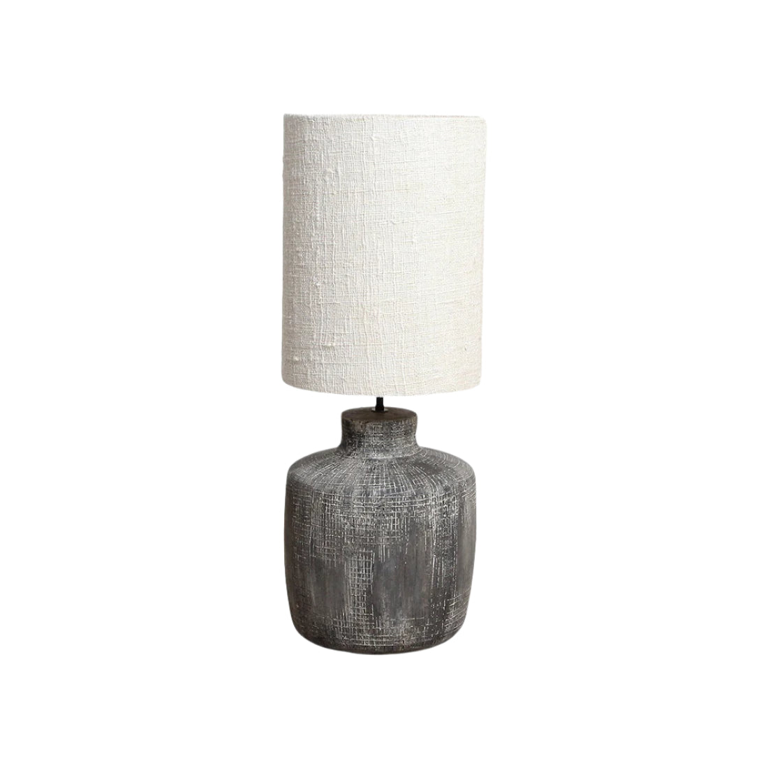 A Terra kollekció Gaia lámpája egy lenyűgöző asztali lámpa, amelyet úgy terveztek, hogy bármely szoba hangulatát feldobja legyen az akár egy nappali akár egy hálószoba. Fehér szövetből készült búrája tökéletes kontrasztot alkot a természetesen organikus mintázattal ellátott, szürke színű agyag lámpatesttel, ami igazán modern és kifinomult hatást kelt. Remekül kombinálható a többi Terra lámpánkkal. Charlotte S. Gavet francia designer tervei alapján készült.