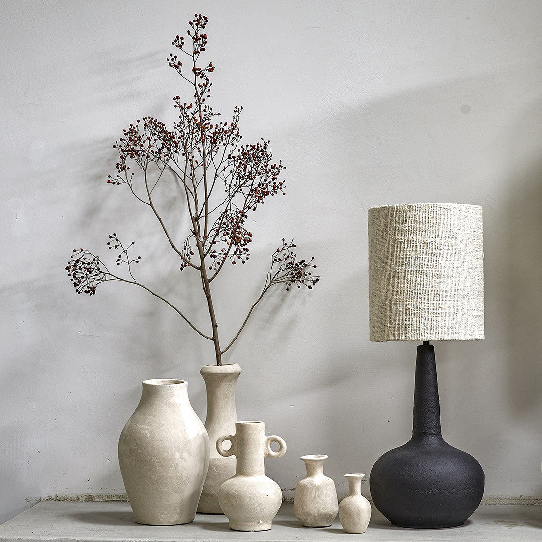 A Terra kollekció Loulou lámpája egy lenyűgöző asztali lámpa, amelyet úgy terveztek, hogy bármely szoba hangulatát feldobja legyen az akár egy nappali akár egy hálószoba. Fehér szövetből készült búrája tökéletes kontrasztot alkot a fekete mázas agyag lámpatesttel, ami igazán modern és kifinomult hatást kelt. Remekül kombinálható a többi Terra lámpánkkal. Charlotte S. Gavet francia designer tervei alapján készült.