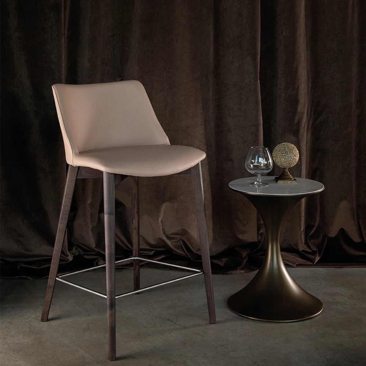 Az Agata bárszék egy modern és kényelmes ülőalkalmatosság, ami tökéletesen kiegészíti a társalgás pillanatait. Hűen a kollekcióhoz ez az ülőalkalmatosság is karakteres megjelenéssel és modern szemléletben, kézműves eljárással készült, ami igazán nélkülözhetetlen alapdarabbá teszi konyhapultok vagy bárasztalok mellett. Fém vagy fa lábakkal, többféle szövettel és étkezőszék változatban is elérhető.