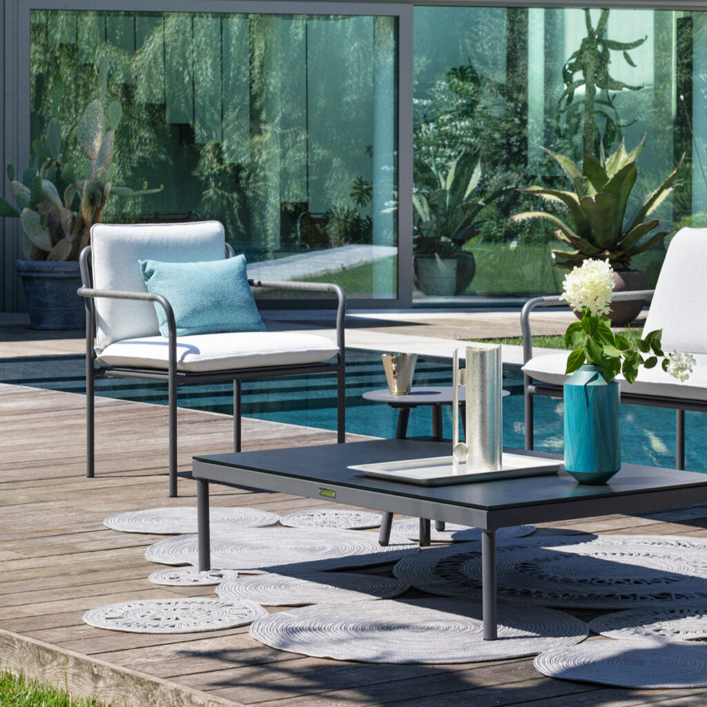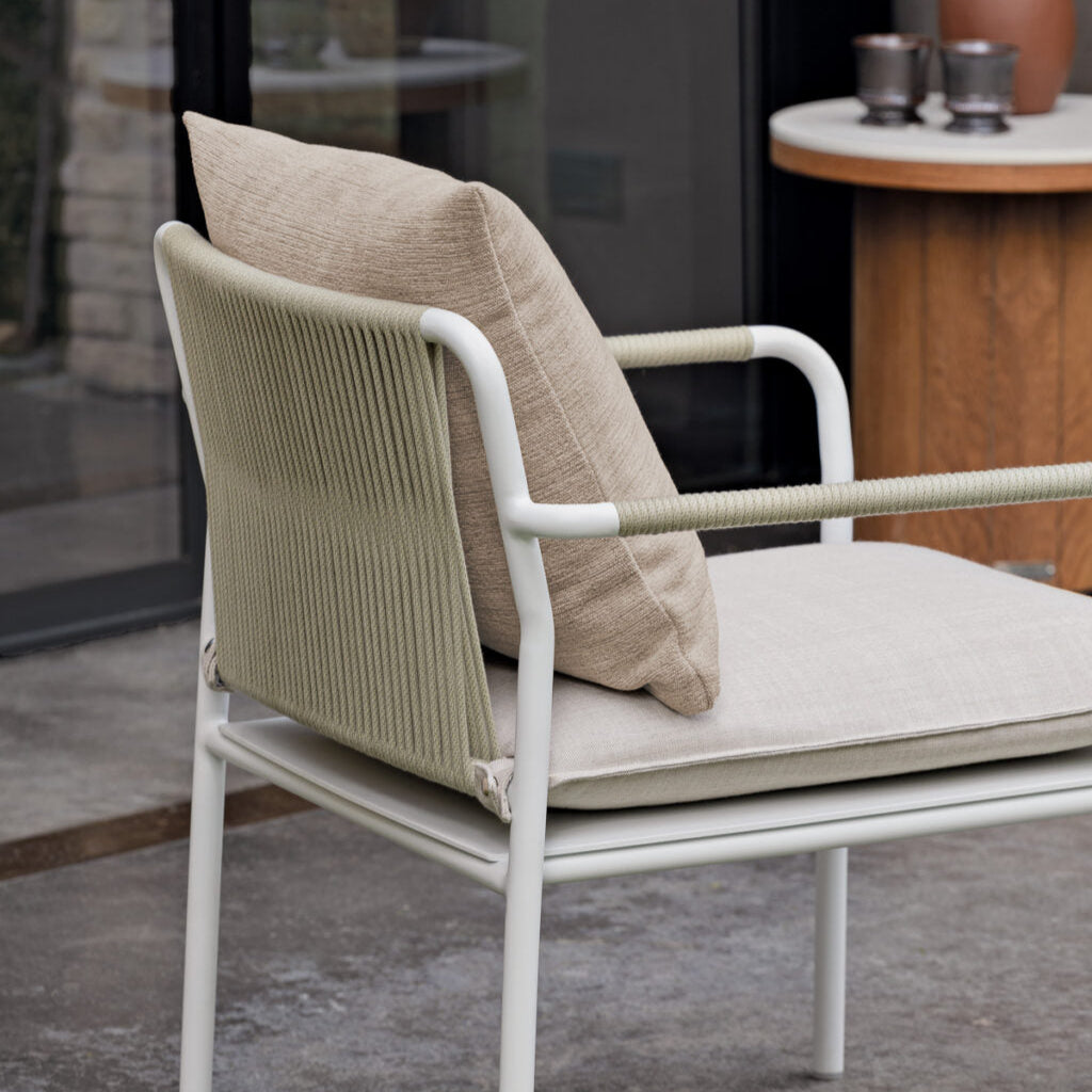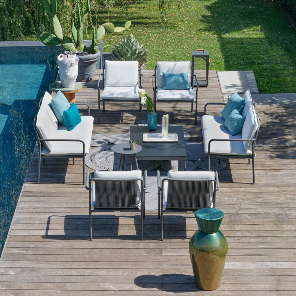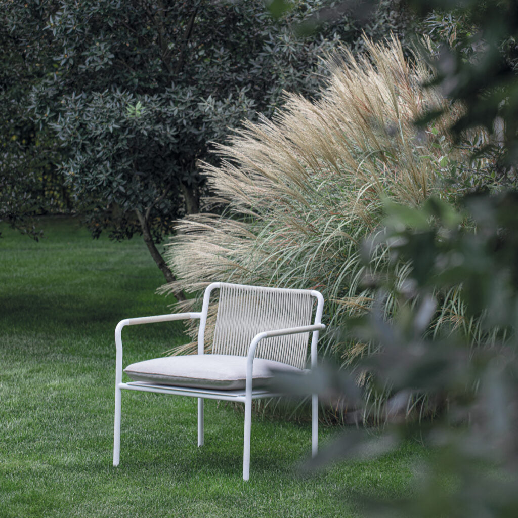 A friss levegő illata és az időtlen ízlés: ez az az inspiráció, amely egyesíti és jellemzi az Air kollekciót. A fehér vagy grafit alumíniumváz könnyedén áramlik, tiszta, geometrikus vonalvezetéssel öleli körül az ülést, amelyet kézzel készített szövés díszít, amely a háttámlát is alkotja, és eleganciát kölcsönöz a karfáknak.