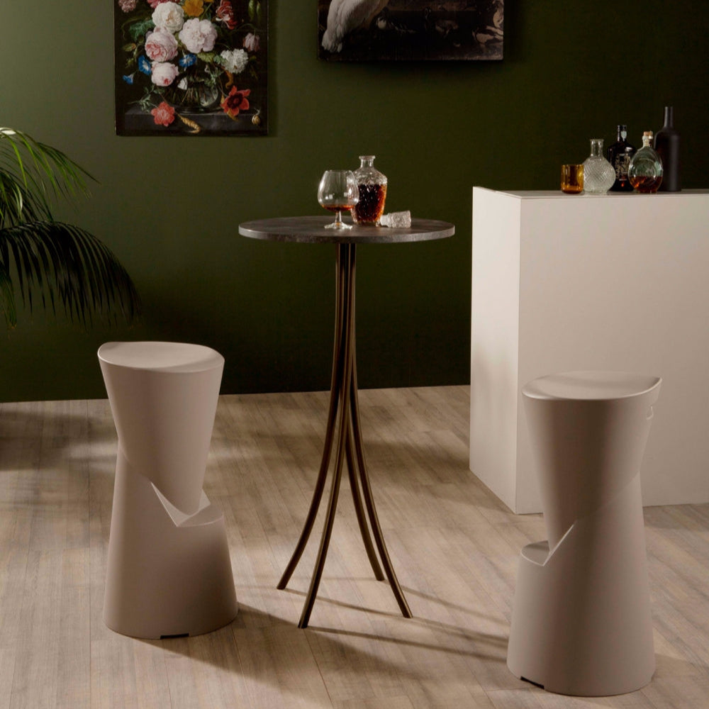 A technológia, a kézművesség fontossága, a New York-i kifinomult társalgókra emlékeztető formák kialakítása: ez Batik bárszék. Minimalista és kortárs megjelenése egyedi karaktert visz a helyiségekbe. Ülése egyetlen darab polietilénből készült, ami mesterien kidolgozott, könnyű és kényelmes, a legkifinomultabb színekben kapható:  galambszürke vagy bronz.