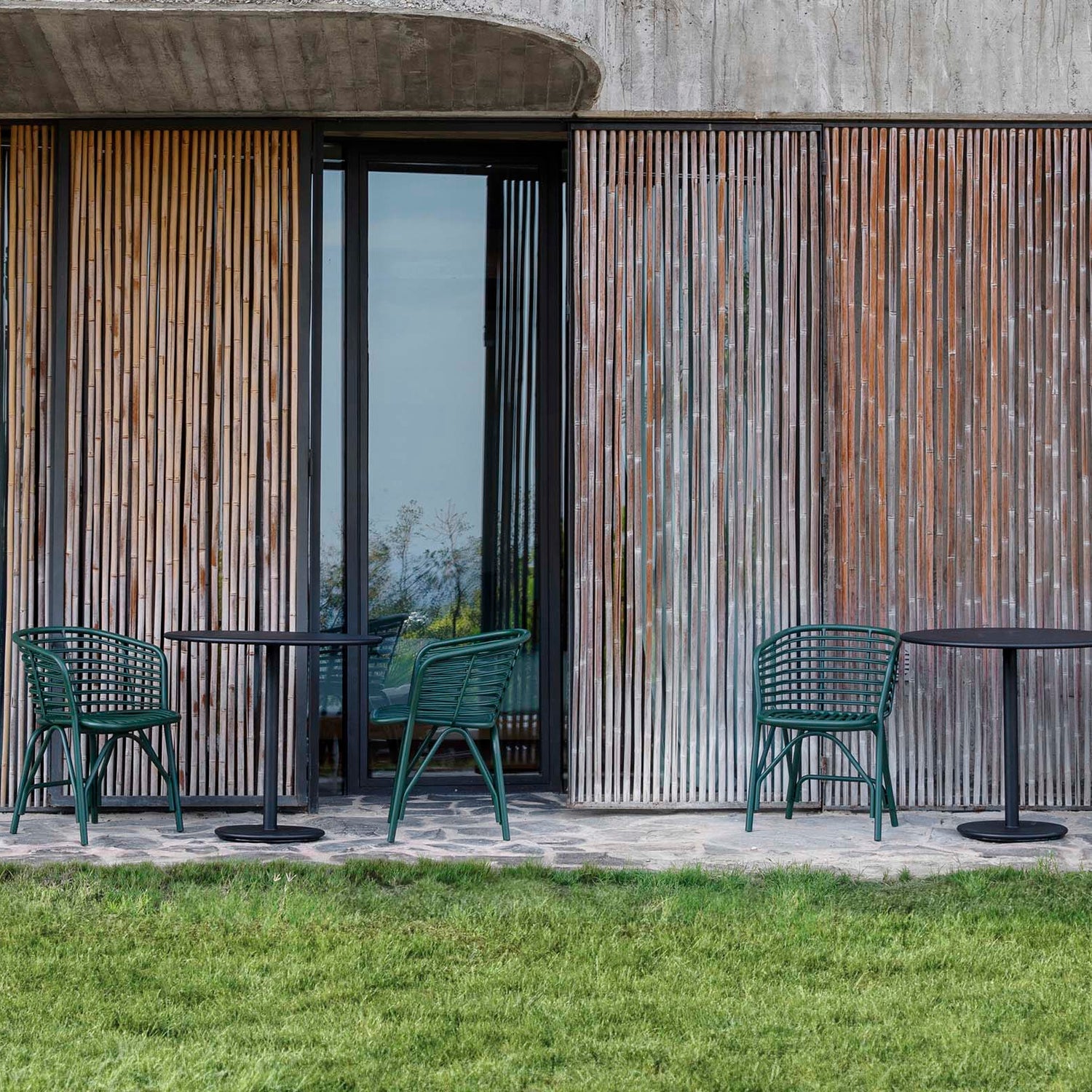 A Blend kerti szék egy elegáns és kényelmes darab, amelyet a Foersom & Hiort-Lorenzen MDD duó tervezett. A sötétzöld szék tartós és időjárásálló porszórt alumíniumból készült. A Blend klasszikus megjelenésű, szoborszerű formákkal, erős szerkezettel és jó ülési kényelemmel rendelkezik.