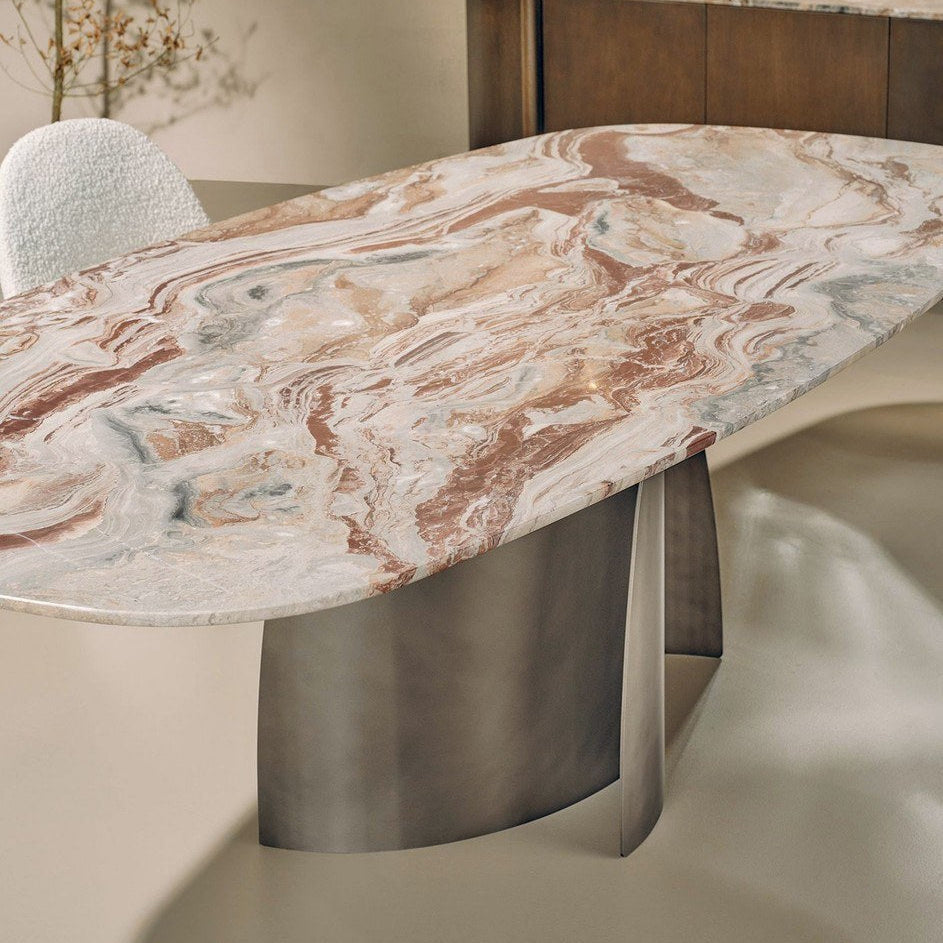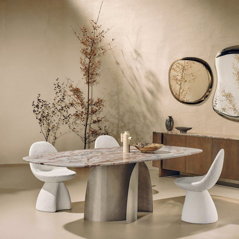 Dobd fel enteriőrödet a személyre szabott Bloom designerasztallal, amelyet az általad választott luxus anyagokból - márványból, fából, kerámiából vagy fémből - rendelésre készítenek. Minden egyes darab a kézművesség és a kortárs dizájn ünneplése, tökéletes egyensúlyt kínálva a funkcionalitás és a művészi kifejezésmód között. Ez az asztal ovális és kör alakú asztallappal is kapható, és kifinomult esztétikát kölcsönöz bármely térnek. Elérhető méretek: Ø 160x75 / 200x110x75 / 240x120x75 / 300x120x75 / 200x109x75 / 240x109x75 / 300x109x75 cm.