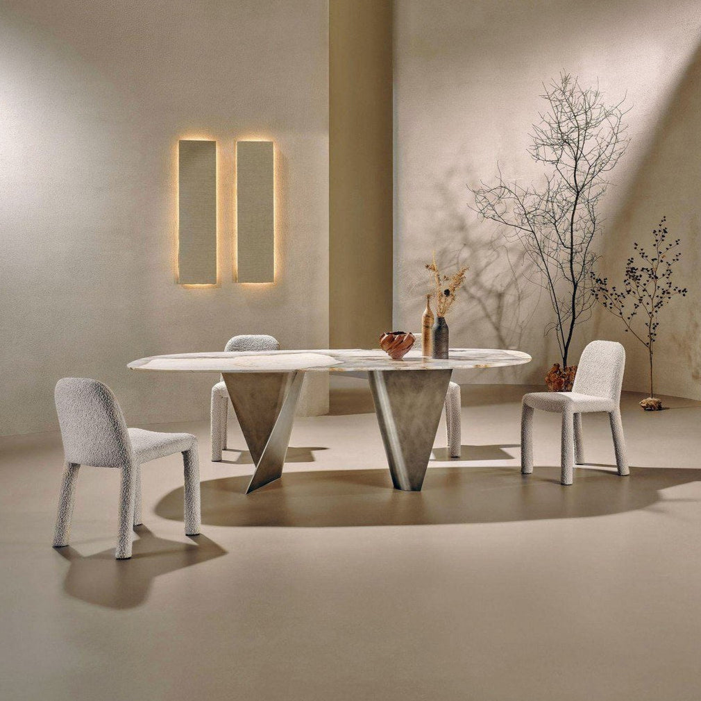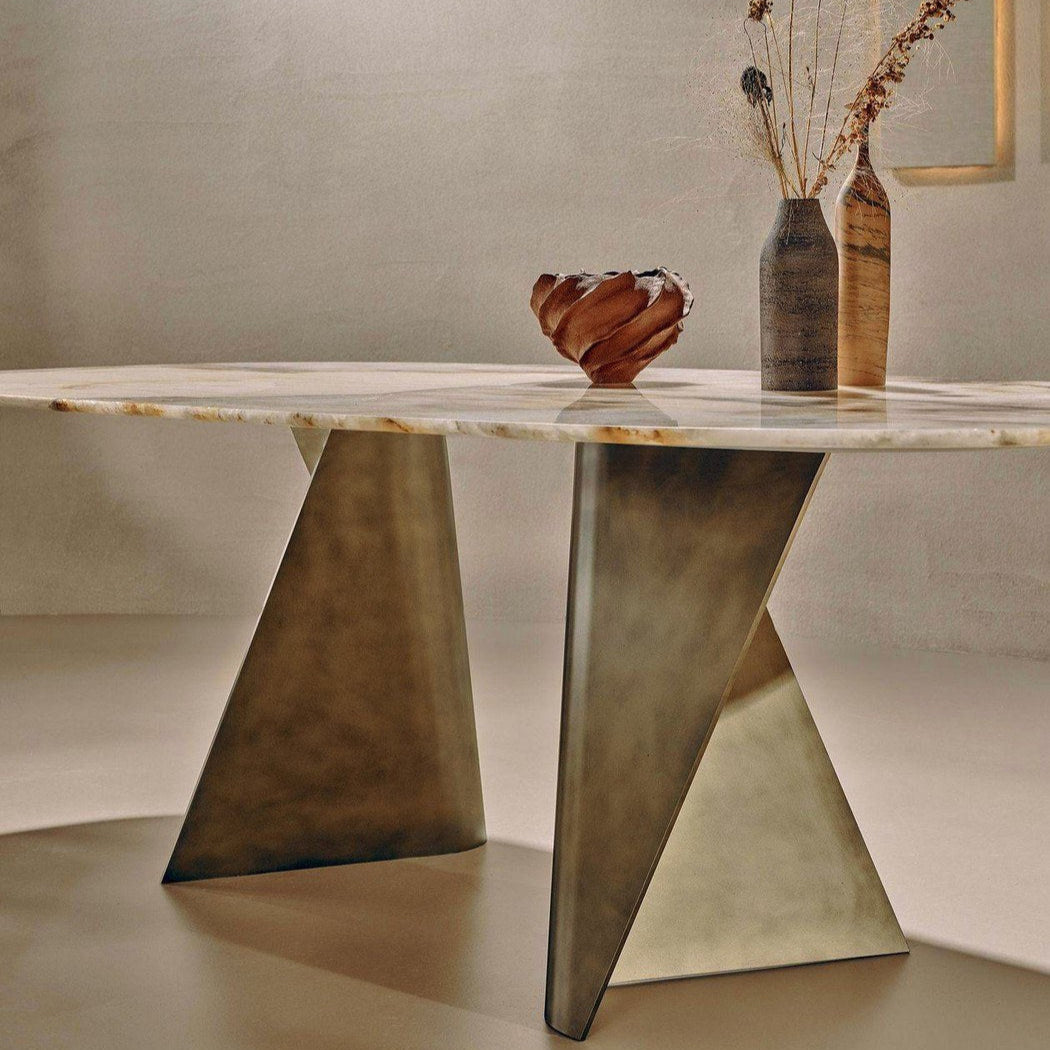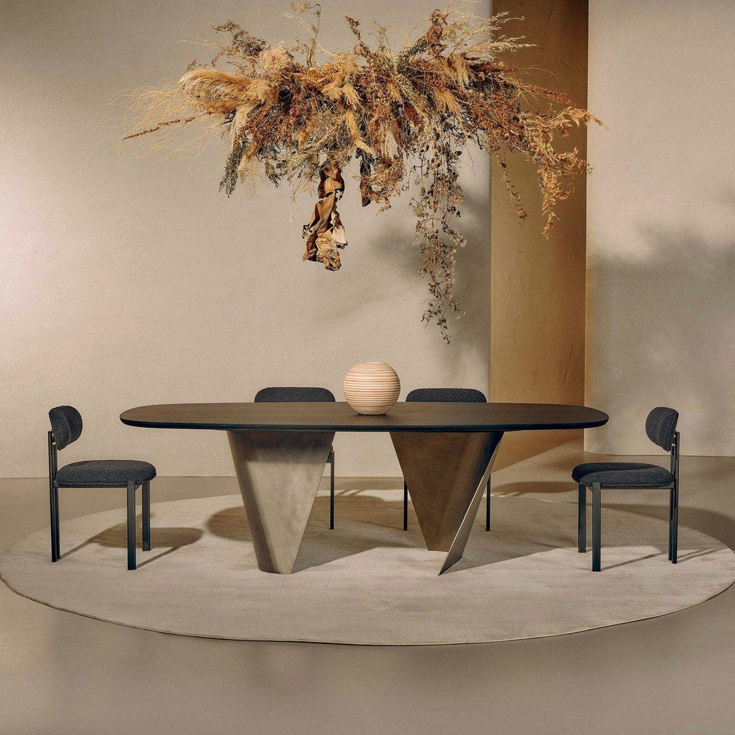 A Blow asztal vonalai által keltett könnyű vizuális hatást a fény és árnyék játékai fokozzák, amelyek az asztalnak erős festői jelenlétet kölcsönöznek, ezáltal tökéletesen illeszkedik bármilyen stílusú környezethez, a fémfelületek és a fa, márvány vagy kerámia lapok révén. Elérhető méretek: Ø 160x75 / 200x110x75 / 240x120x75 / 300x120x75 / 200x109x75 / 240x109x75 / 300x109x75 cm.