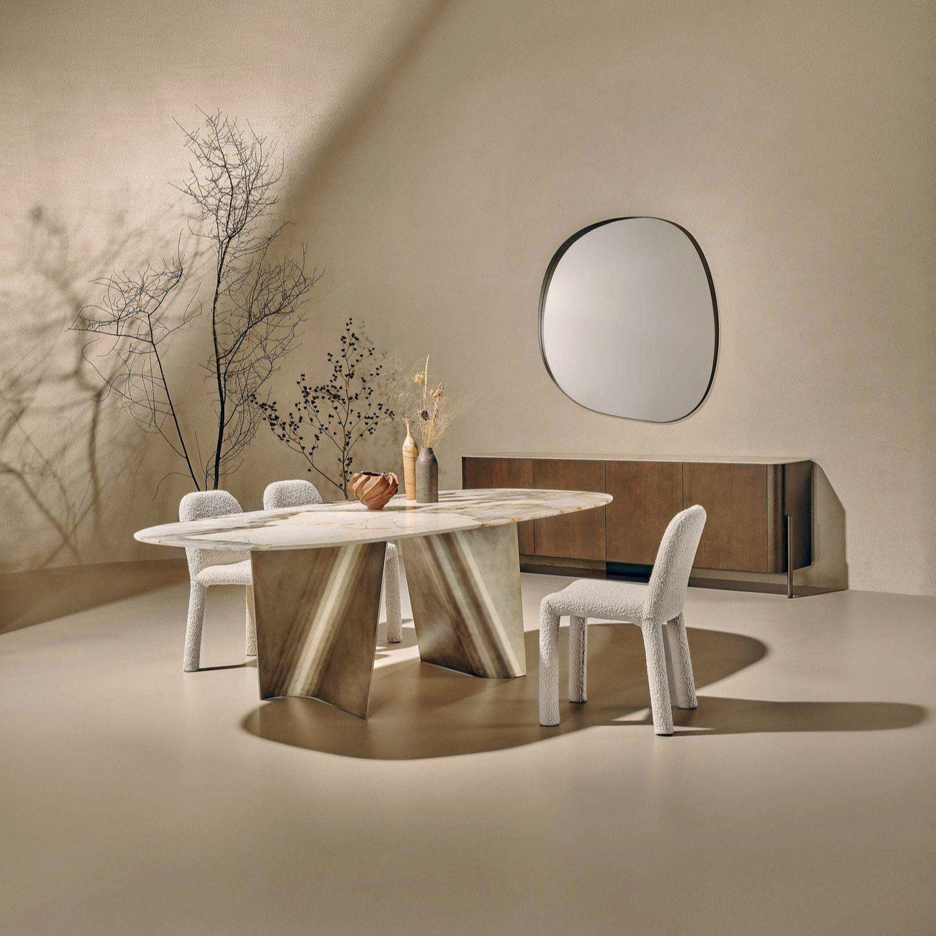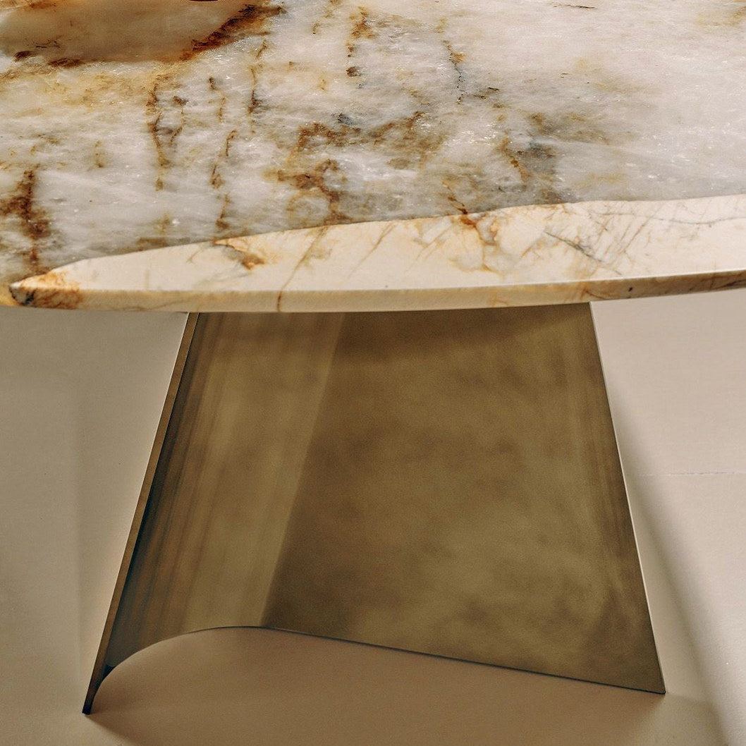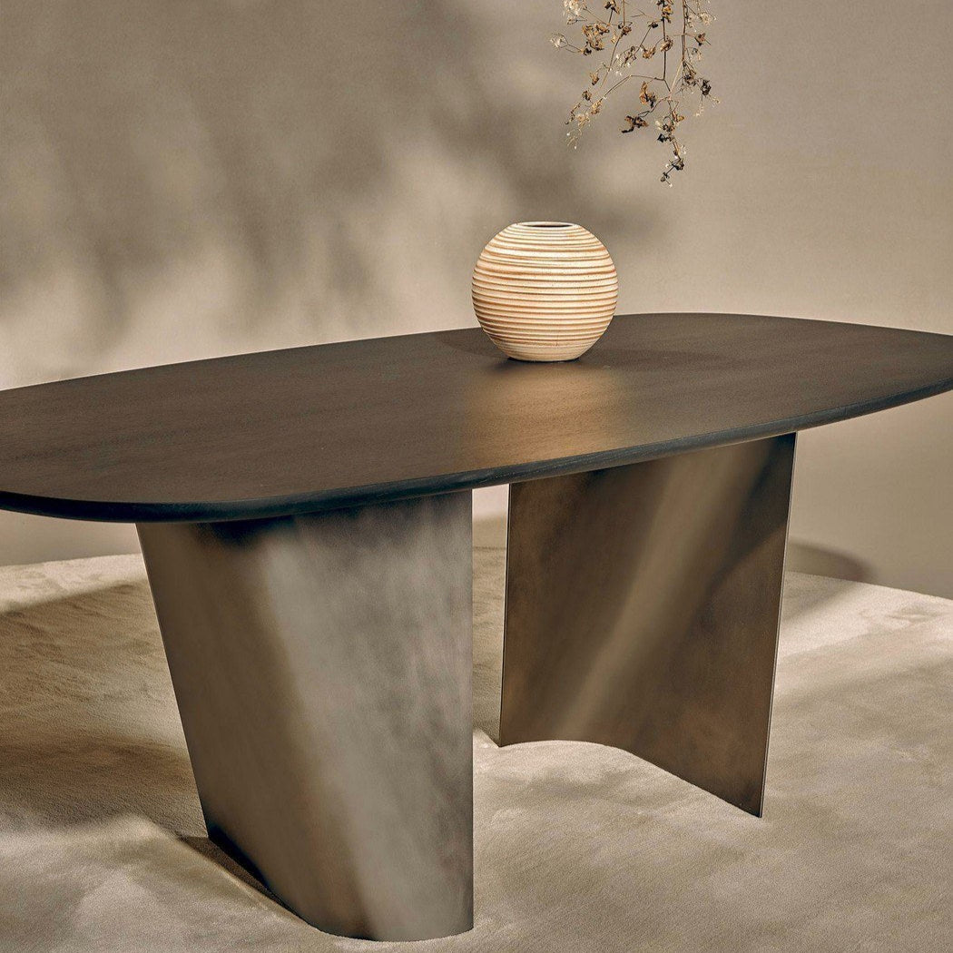 A Blow asztal vonalai által keltett könnyű vizuális hatást a fény és árnyék játékai fokozzák, amelyek az asztalnak erős festői jelenlétet kölcsönöznek, ezáltal tökéletesen illeszkedik bármilyen stílusú környezethez, a fémfelületek és a fa, márvány vagy kerámia lapok révén. Elérhető méretek: Ø 160x75 / 200x110x75 / 240x120x75 / 300x120x75 / 200x109x75 / 240x109x75 / 300x109x75 cm.