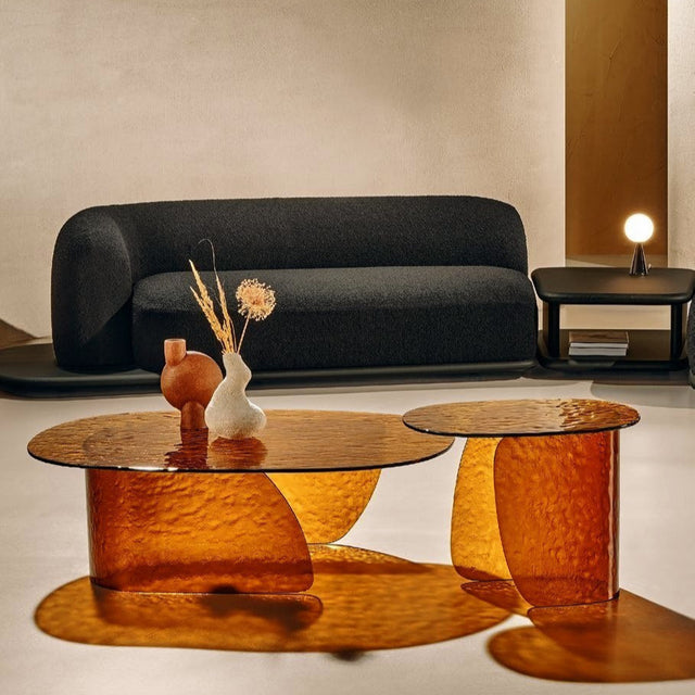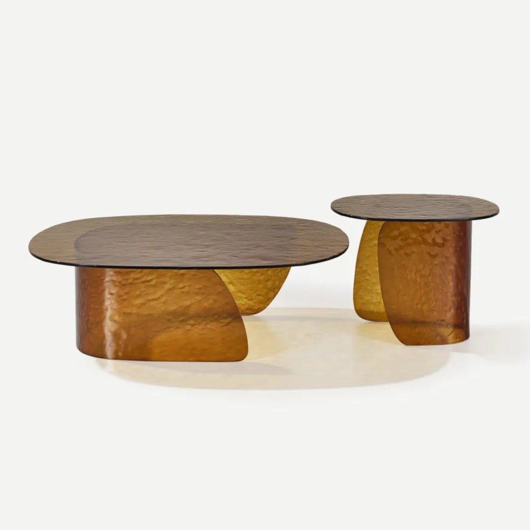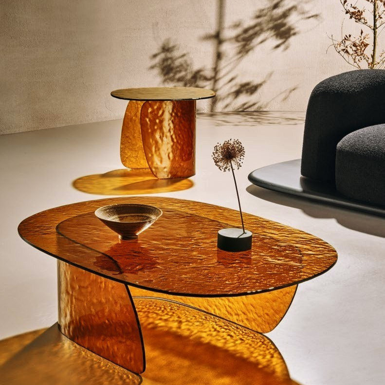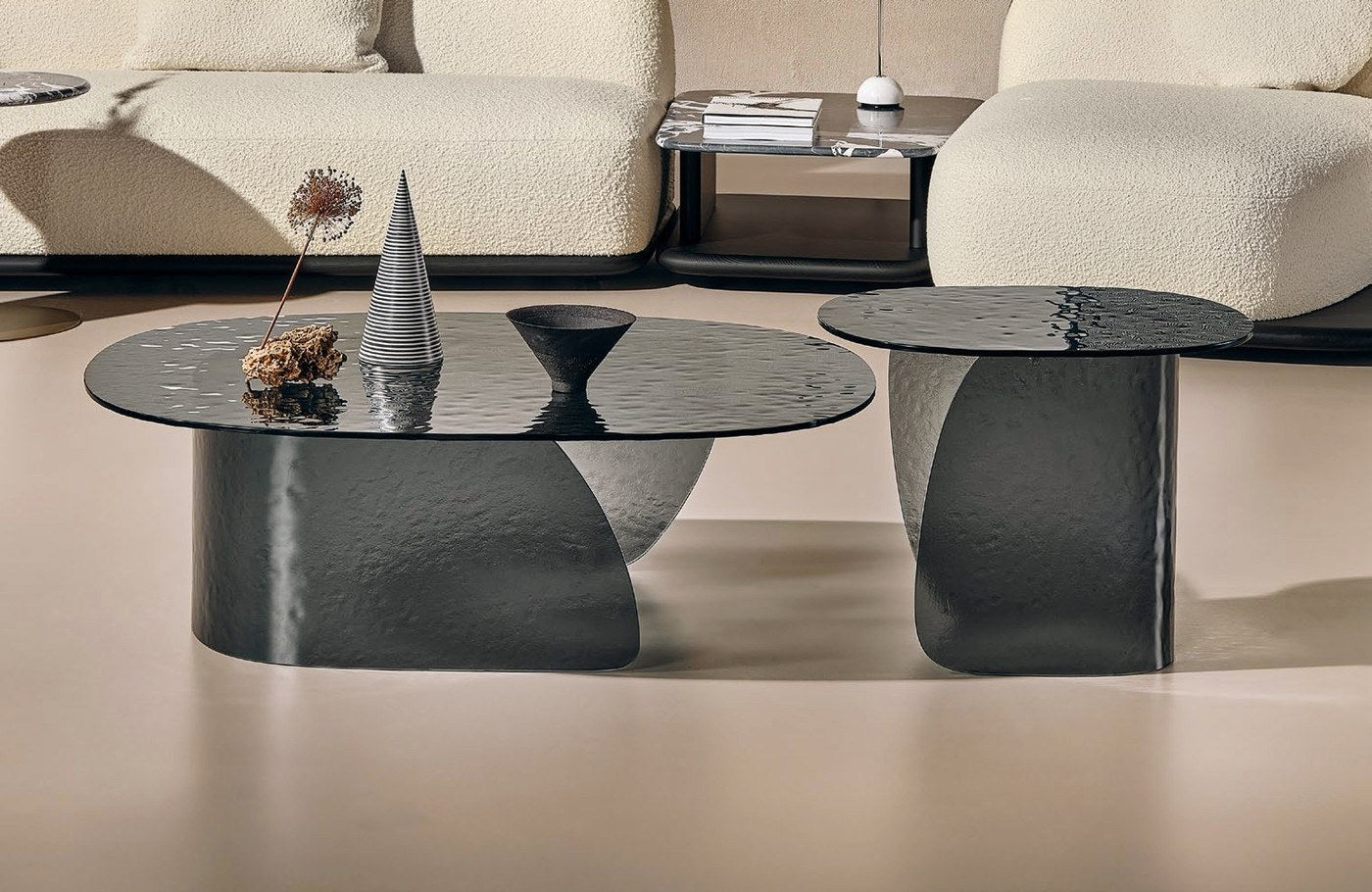 A Blur asztal finom ívei és lágy formái a lakókörnyezet új bútorai lesznek. A fényt megszűrő, textúrázott üveggel a Blur végasztalok igazi dísztárgyakká válnak, ezáltal a praktikum egyesül az esztétikai élménnyel. Az üveg 4 színben - átlátszó, sötétszürke, barna, sárga - választható. Elérhető dohányzó- és lerakóasztal kivitelekben, különböző méretekben: 65x50x50 / 120x88x38 cm.