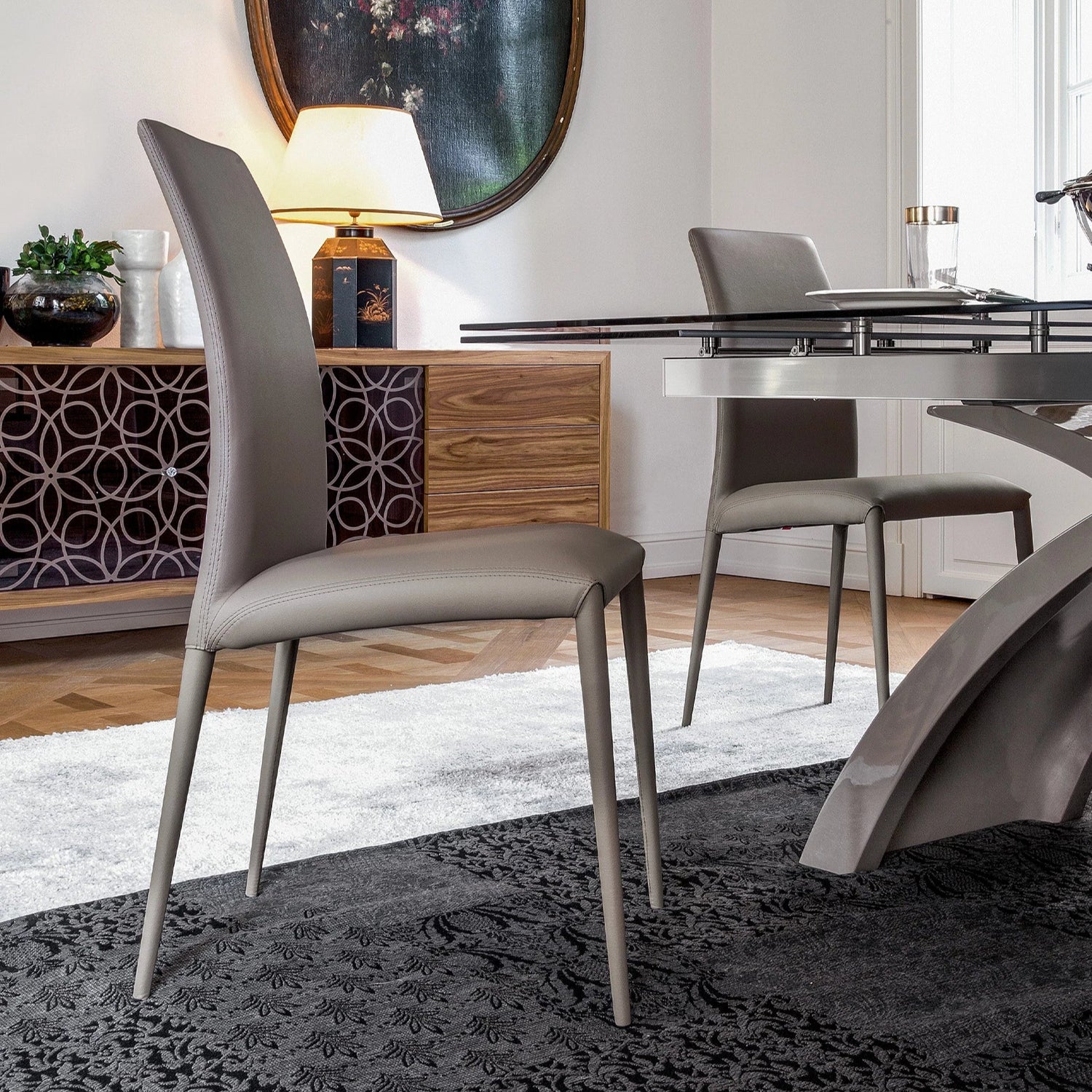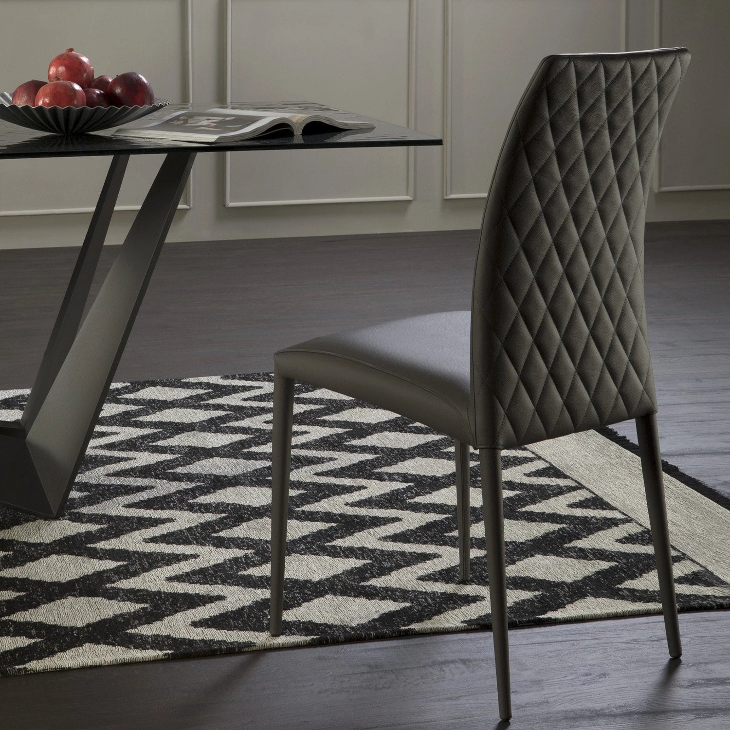 A Charm sima és könnyű szerkezetét nagy sűrűségű habszivacs borítja: ezt az anyagot rendkívül kényelmes és tartós székek létrehozásához használják. A borítás a Tonin Casa katalógusában elérhető összes bőrt felöleli, így a széles választékból létrehozhatod saját, egyedi székeidet. A Charm kézműves, a háttámlán lévő elegáns rombuszmintázattal is elérhető.