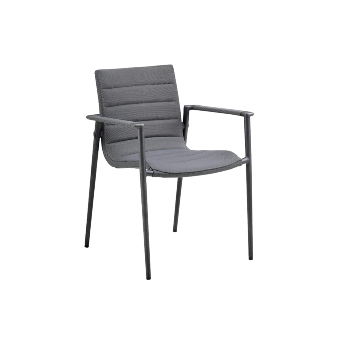 A Core kerti szék időtlen dizájnnal rendelkezik, tartós anyagokból készült, és hosszú élettartammal bír. Modern és egyszerű kialakításának köszönhetően a szék minden környezetebe könnyedén illeszkedik. A modell egyedisége abban rejlik, hogy egyetlen darabhoz sem kell párnázás, mivel puha és erős Cane-line AirTouch szövet felülettel rendelkezik, amely könnyen tisztítható és minimális karbantartást igényel. A Core szék váza időjárásálló, porszórt alumíniumból készült.