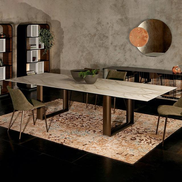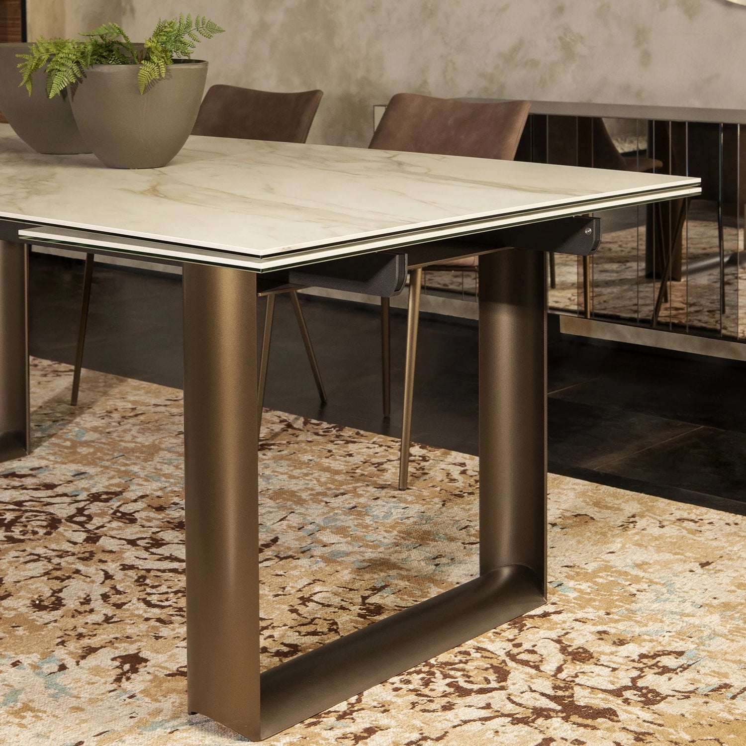 A fix vagy bővíthető kivitelben elérhető Cube egy kifejező esztétikájú étkezőasztal. Az alapok különleges formája kifinomulttá teszi az asztalt, amely minden projekthez vagy környezethez illeszkedik, a számos kivitelezésnek köszönhetően is. Elérhető méretek: 90x160x75 / 90x180x75 / 100x200x75 / 120x250x75 / 120x300x75 cm, bővíthető modell méretei: 160-240x90x75 / 180-260x90x75 / 200-300x110x75 cm.