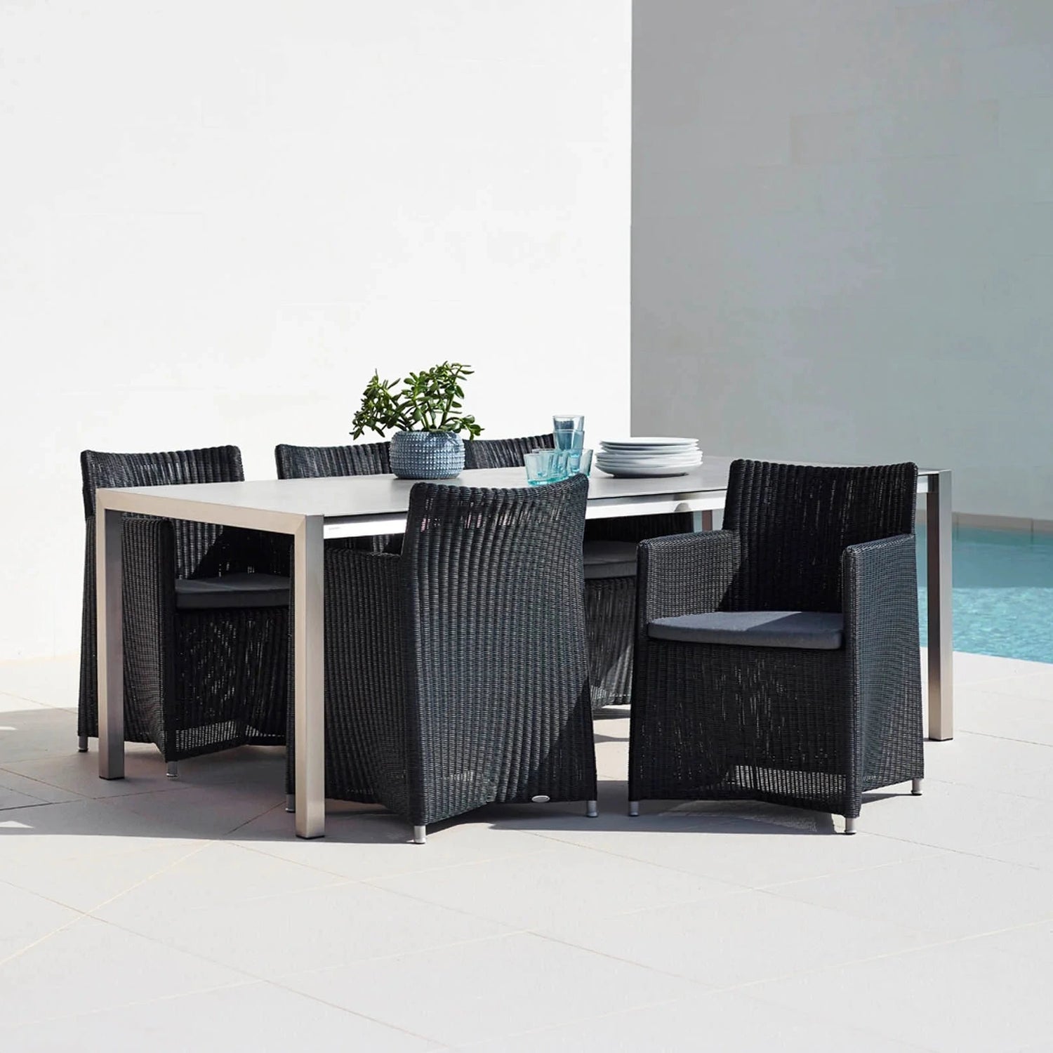 A Diamond egy klasszikus és egyben modern kerti szék, ahol az innovatív dizájn gyönyörű formában nyilvánul meg. A szék Cane-line Weave® szövet anyagból készült, amely egy tartós, és időjárásálló anyag. Ennek a változatnak a párnája ultrapuha és kényelmes Cane-line Natté szövetből készült QuickDryFoam®-mal, amely lehetővé teszi a gyors száradást egy zápor után. Az anyag víz- és szennyeződéslepergető, valamint magas fényállósággal rendelkezik.