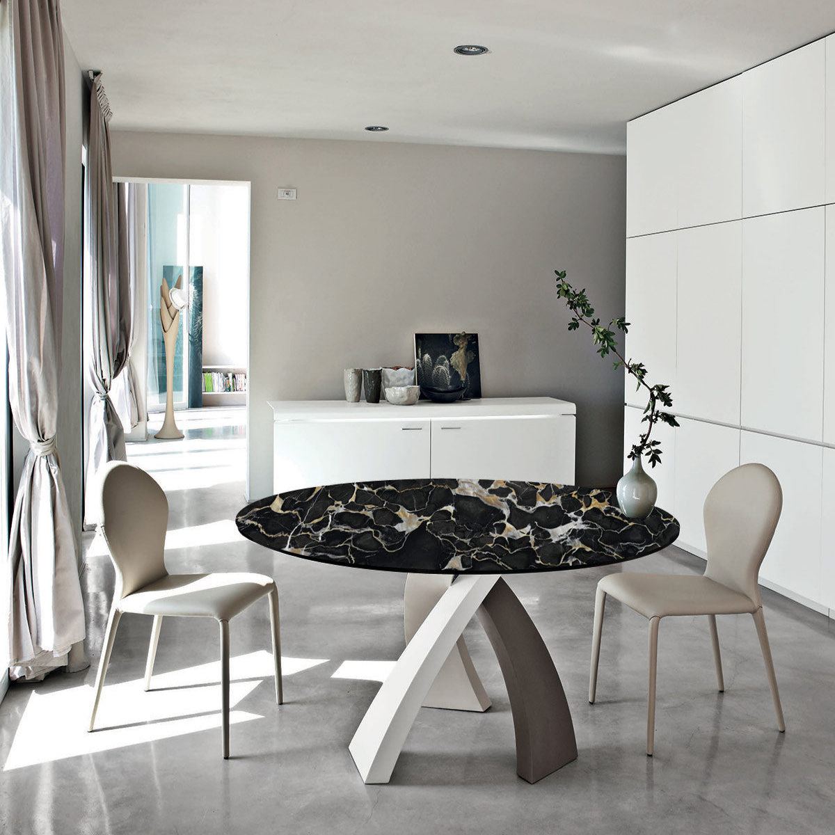 Az Eliseoval egy rendkívül kifinomult étkező született, amely három színű változatban, vagy dupla talapzattal kapható. Ellipszis alakú, kifinomult sziluettje méltóságteljesen tartja számtalan asztallappal választható, mint márvány, edzett üveg, fa. Kerek / ovális vagy szögletes formában. Elérhető méretei anyagtól függően: Ø120x75 /Ø140x75 / Ø160x75 / 120x220x75 / 120x250x77 / 120x300x77 cm.