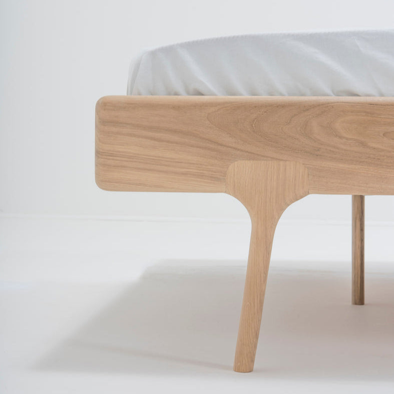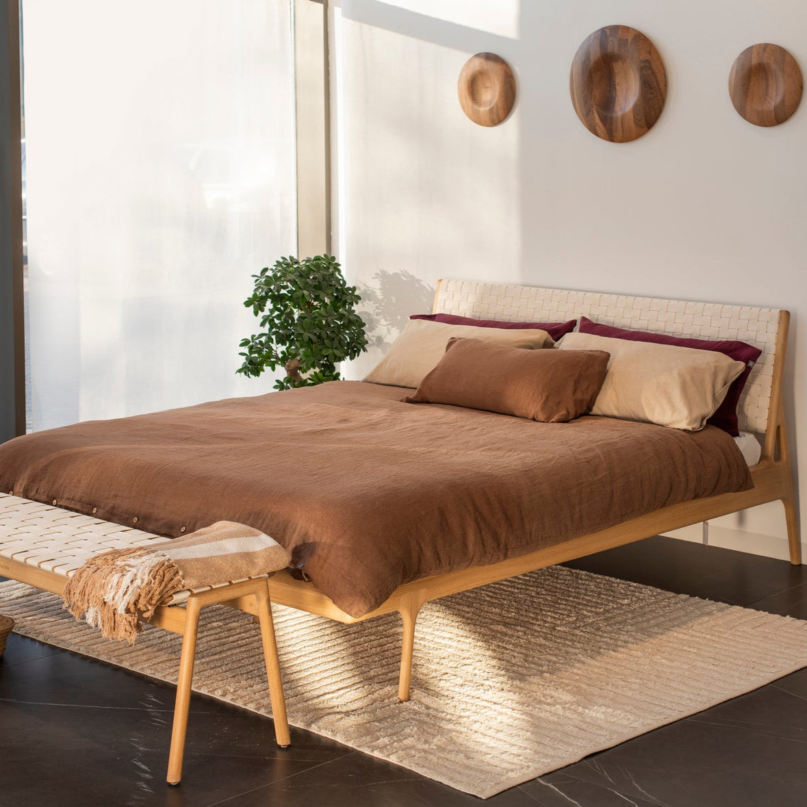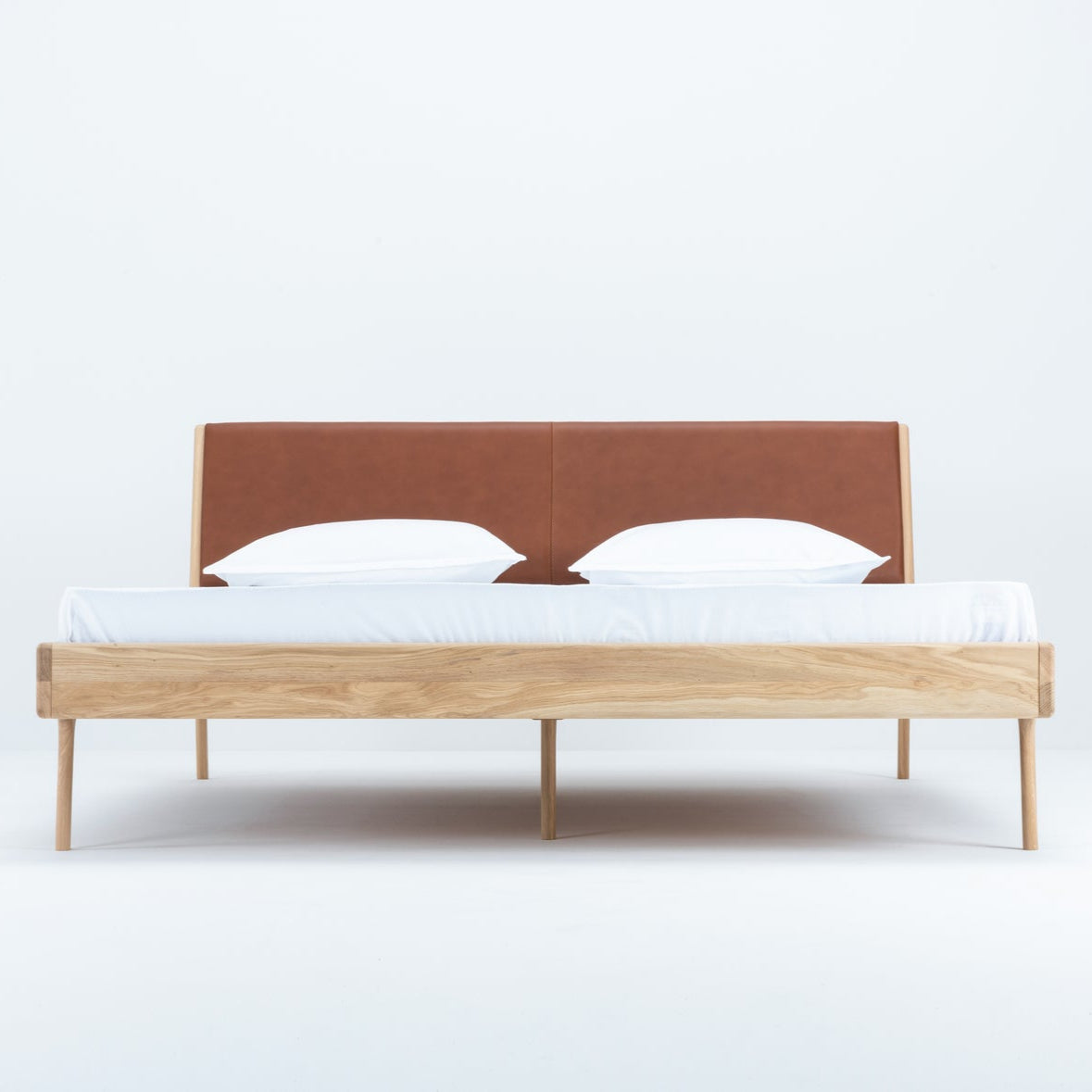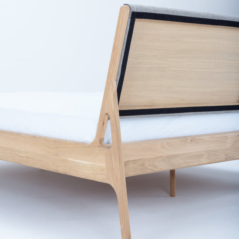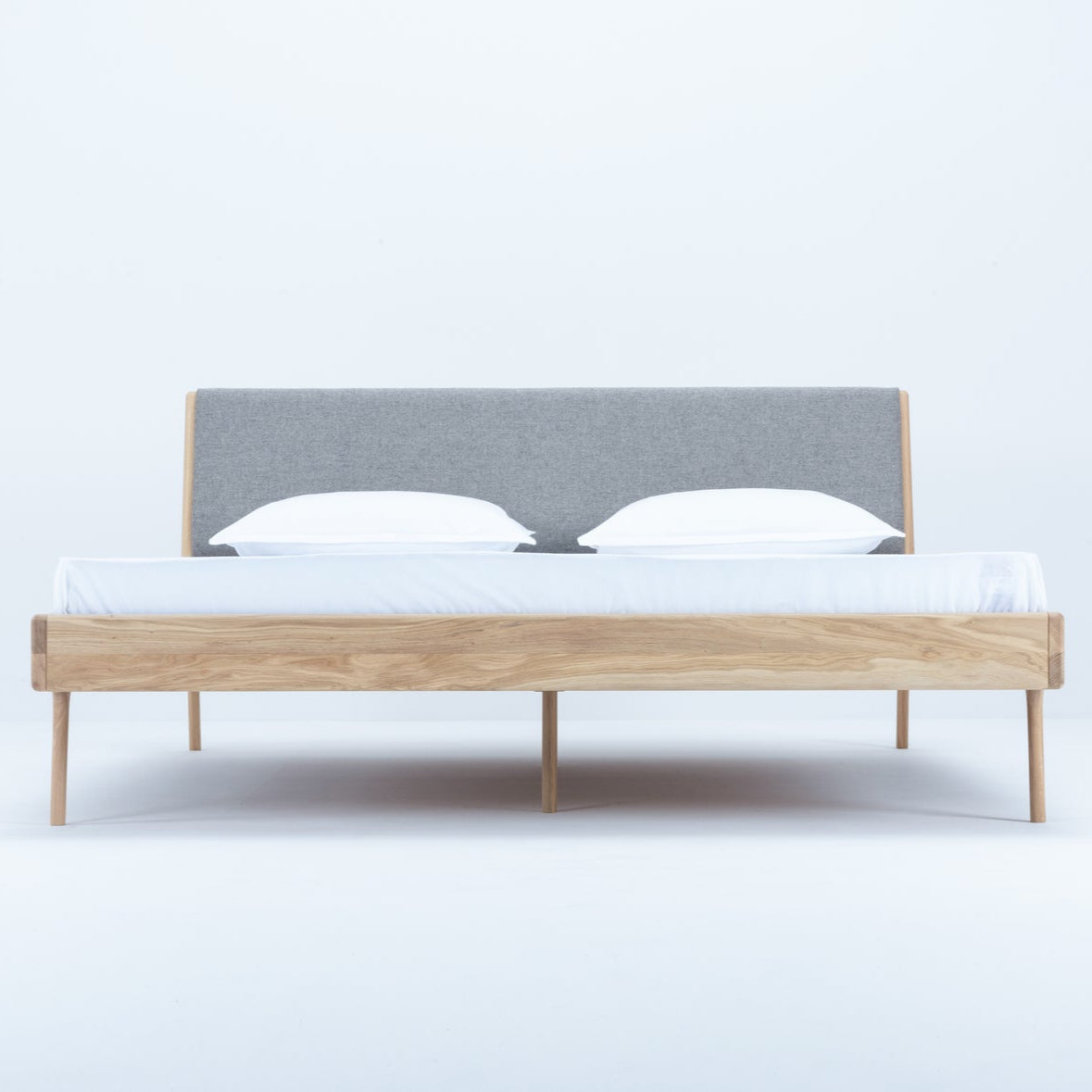 A Fawn ágykeretet a természet ihlette, visszafogott dizájnjával frissítően hat bármely hálószobában. Tömör fából készült, konstrukciója lágy illesztésekkel és sima, polírozott felületekkel büszkélkedhet. A Fawn lényege a hatékony anyaghasználatban rejlik, ami az egységes, jellegzetes oldalakban és résekben nyilvánul meg. Ezek az elemek harmonikus egésszé állnak össze. Az ágy fejtámlája, amely szabadon választható, pamutszövésű vagy kárpitozott kivitelben kapható, finoman hátradől, kényelmes támasztékot nyújtva az olvasáshoz vagy a pihenéshez. A Fawn ágy a minimalista esztétika és az átgondolt funkcionalitás keverékét foglalja magába, időtlen eleganciával emelve a hálószoba hangulatát. Elérhető méretek: 140x200 / 160x200 / 180x200 cm.