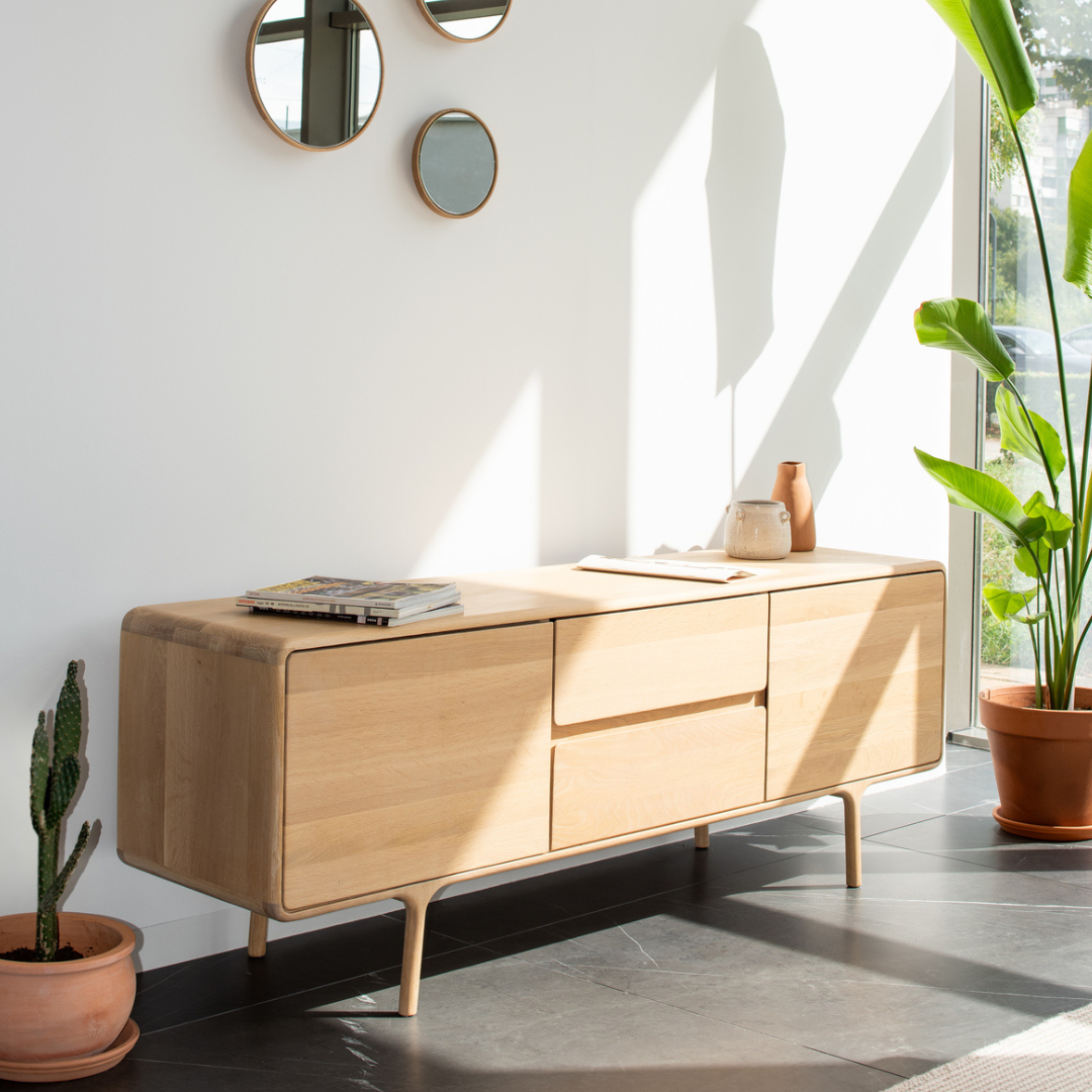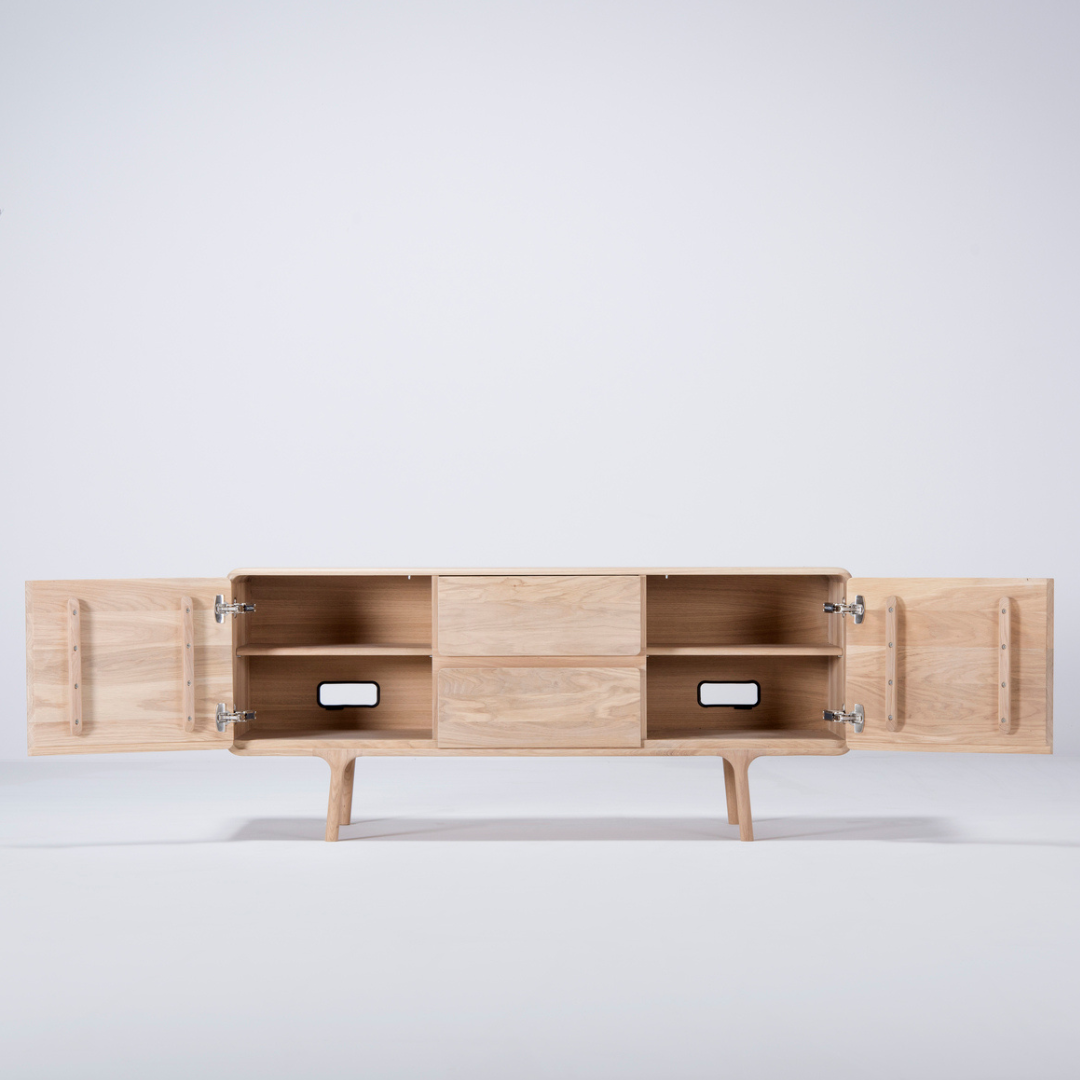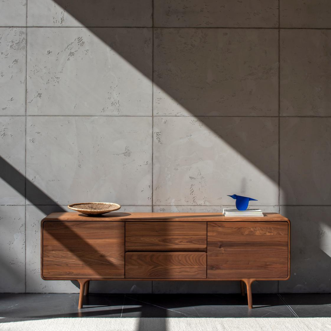 A Fawn tömörfa dizájner komód természetességet és kifinomultságot visz minden térbe. Sima, kézzel polírozott felületeivel és folyékony vonalaival a design mind tapintásra, mind vizuálisan gyönyörködtet. A komód két lágyan záródó ajtóval és fiókkal büszkélkedhet, amelyeket átgondoltan úgy terveztek meg, hogy elférjenek a hétköznapi kiegészítőid. Elérhető méretek: 150x45x65 / 180x45x65 cm.