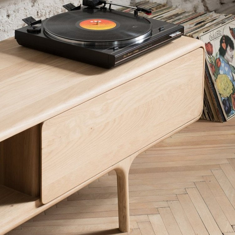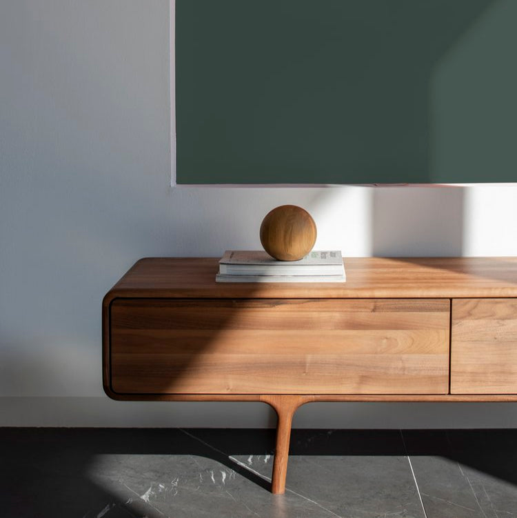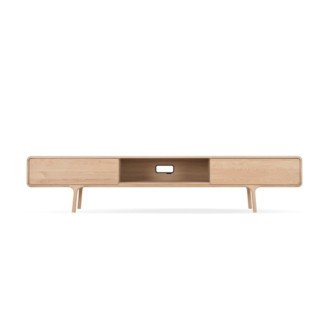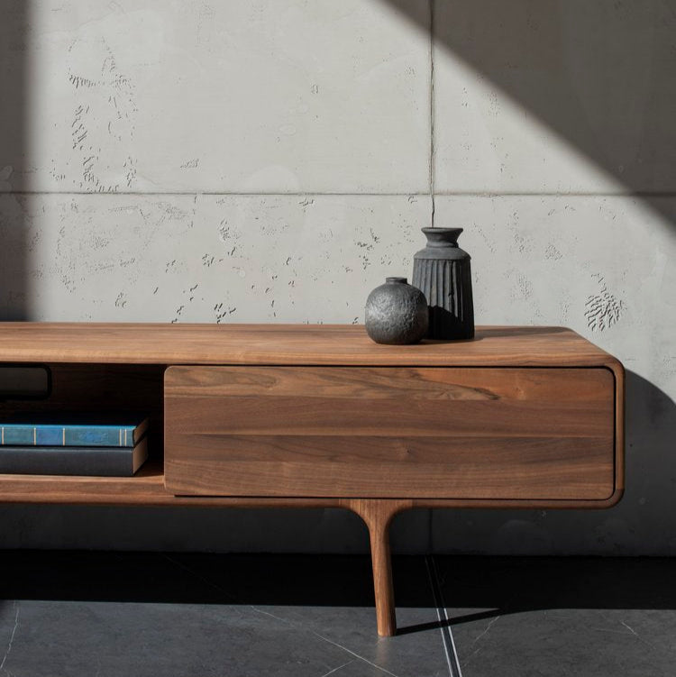 A Fawn tömörfából készült dizájndarab természetességet és kifinomultságot visz minden térbe. Sima, kézzel csiszolt felületével és fluid vonalaival tűnik ki - mind a tapintási, mind a vizuális érzékszerveket kiszolgálja. A Fawn két vagy három, nyomásra nyitható fiókkal kapható. A kétfiókos változat gazdag kábelvezető lyukakkal van ellátva középen, amely kiválóan alkalmas TV egységek elhelyezésére. Tölgy- vagy diófából készült kivitelekben elérhető.