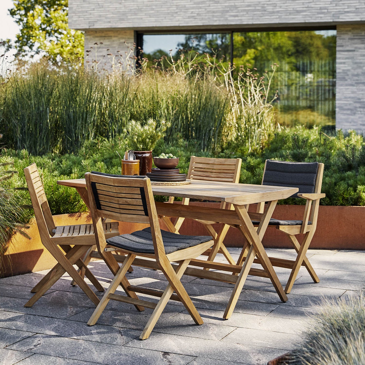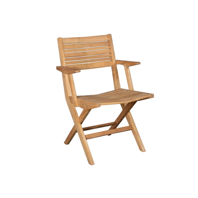 A Flip egy tíkfából készült, összecsukható, karfás szék. Ez a modell a klasszikus összecsukható székek új értelmezése, a kiváló dizájnra és minőségre helyezve a hangsúlyt. A vonzó megjelenés mögött a dán Strand+Hvass duó áll. A meleg, natúr színű tíkfa hívogató fényt kölcsönöz az egyszerű és elegáns széknek. Ideális választás kisebb kültéri terekbe, ahol korlátozott a tárolóhely. A Flip szék karfa nélküli változatban is kapható.