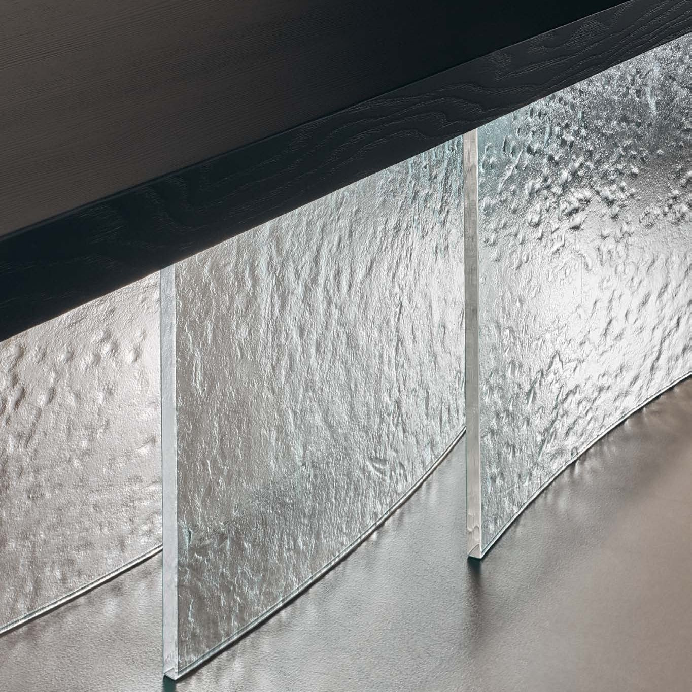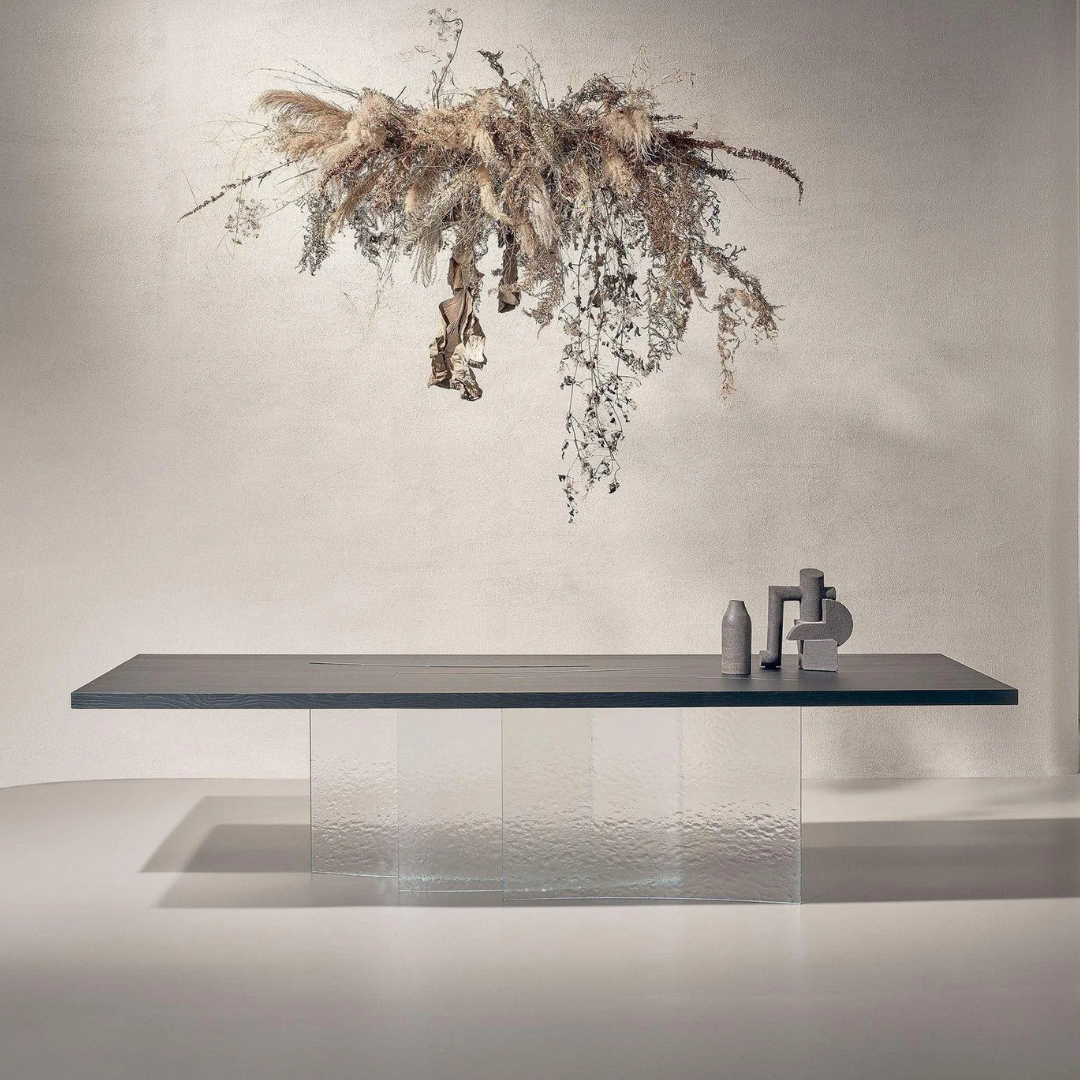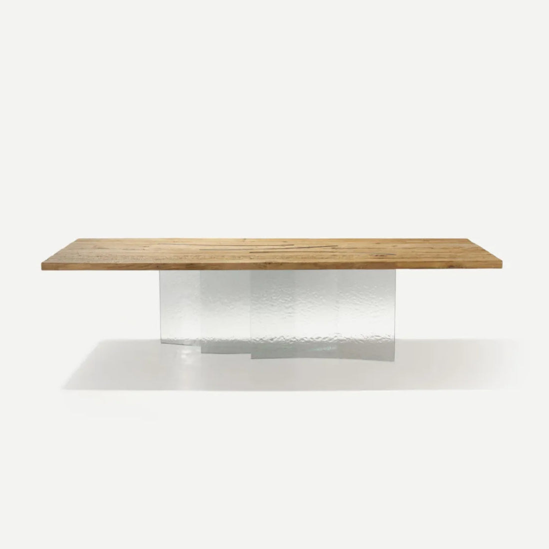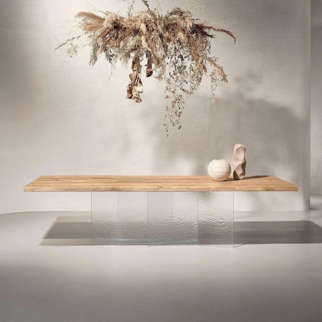 A Fontana asztal természetes Secolare fából készült asztallappal és extra átlátszó öntött üveg talppal. Formatervezése minimalista, de mégis látványos és dinamikus. Nevét a vizet idéző, szinte fluid hatást keltő, üvegből készült lábazatáról kapta. Tapasztald meg a valódi high-end luxus lakberendést ezzel az exkluzív dizájn bútorral. Elérhető méretek: 250x110x75 / 300x110x75 / 350x110x75 cm.