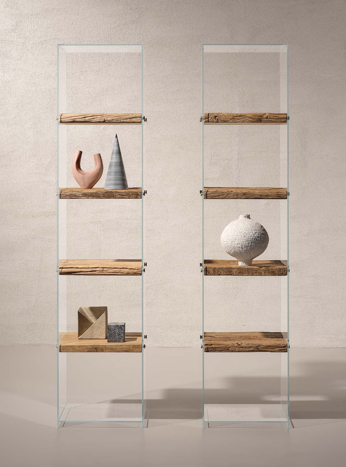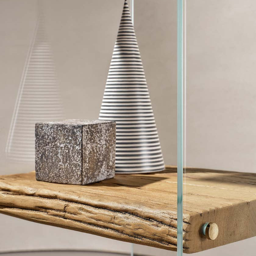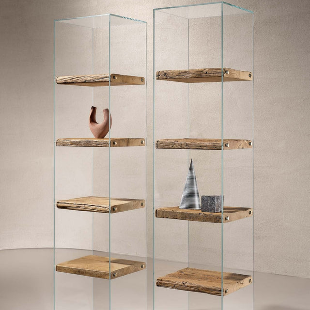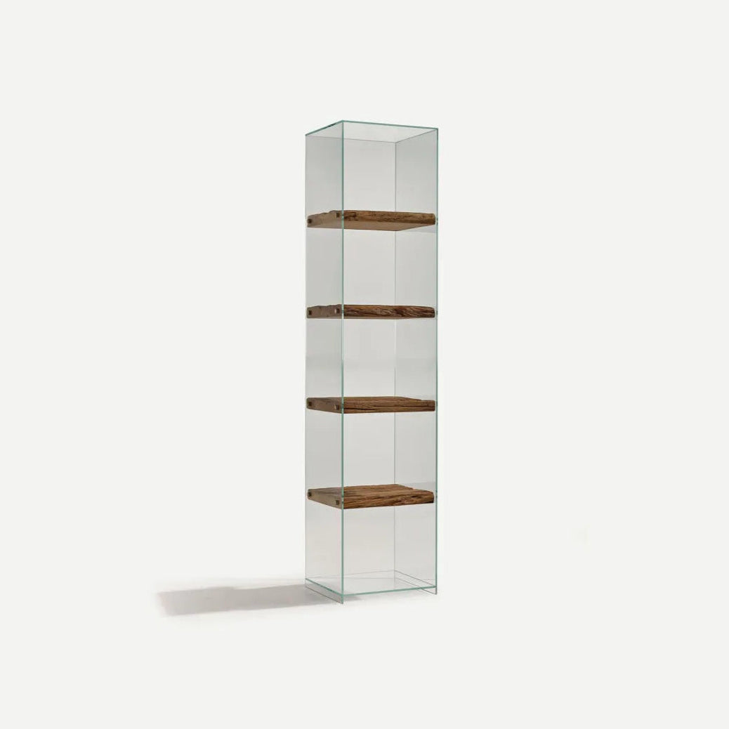 A Frost könyvespolc átlátszó üvegszerkezettel és természetes Secolare fa polcokkal. Minimalista és modern dizájn, üveg keretének köszönhetően lebegő polcok illúzióját kelti, ezáltal friss és légies színt visz a belső terekbe. Ideális kisebb terekbe, vagy olyan pontra, ahol fényforrás éri, így a fény szemet gyönyörködtetően szűrődik át oldalfalain.