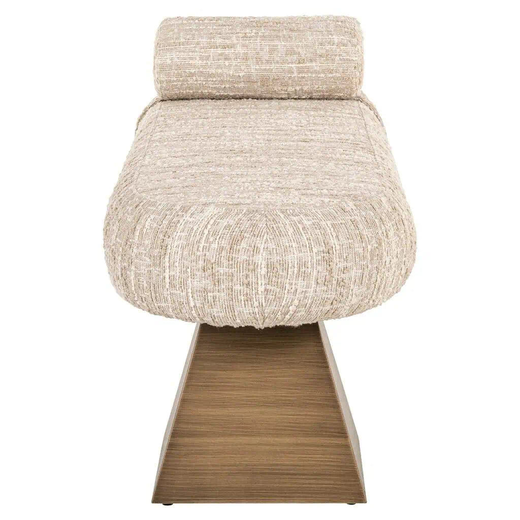 A Geneva pad egy elegáns és stílusos darab, melyet finom tapintású bézs színű szövet borít. Az antikolt arany színű, aszimmetrikus lábak különleges geometriai alakzatokat formáznak, ezáltal modern és art deco stílusú megjelenést kölcsönöznek a padnak. Tökéletes választás lehet nappaliba, hálószobába, vagy előszobába, hogy egyedi hangulatot teremts otthonodban.