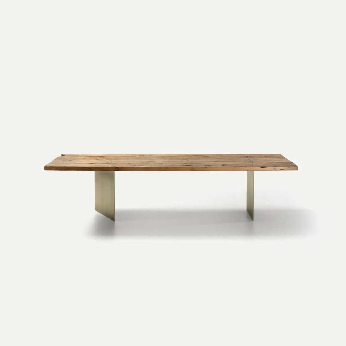 Harvest asztal természetes Secolare fa asztallappal és luxor bronz vagy Murano üvegből készült fém talppal. Exkluzív és egyedülálló dizájn bútor, ami karaktert és exkluzív hangulatot visz minden enteriőrbe. Elérhető méretek: 200x110x75 / 250x110x75 / 300x110x75 / 350x110x75 cm.
