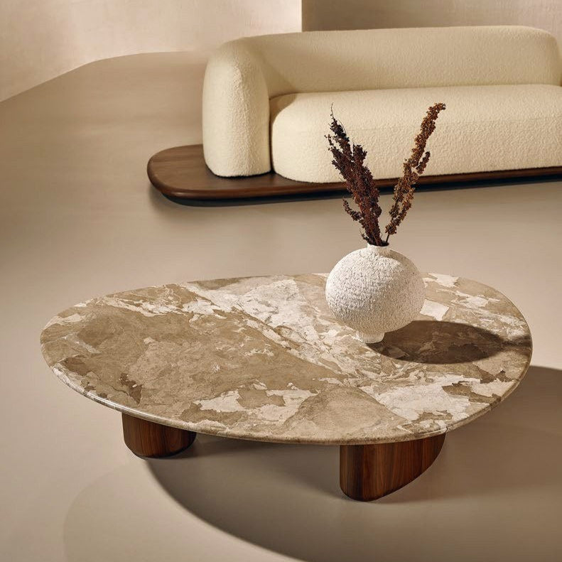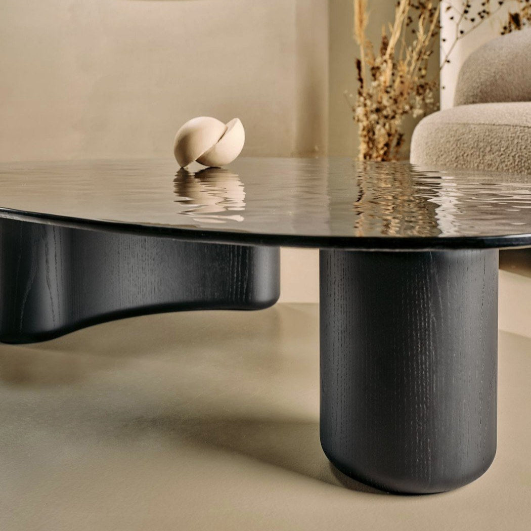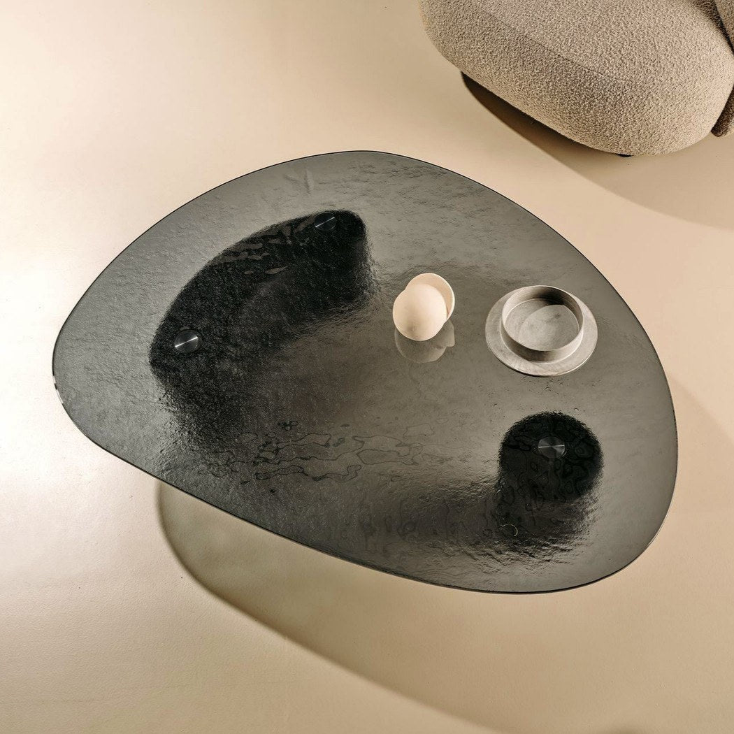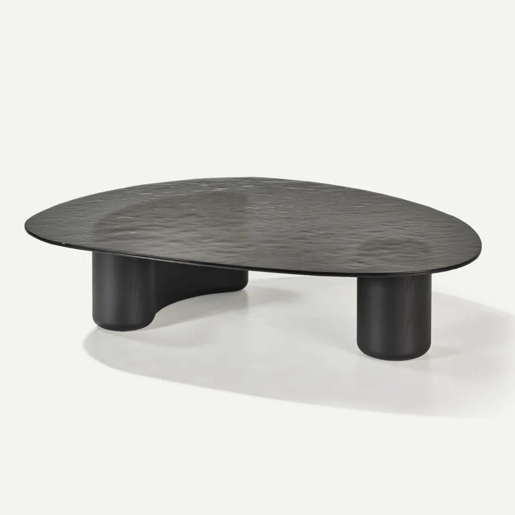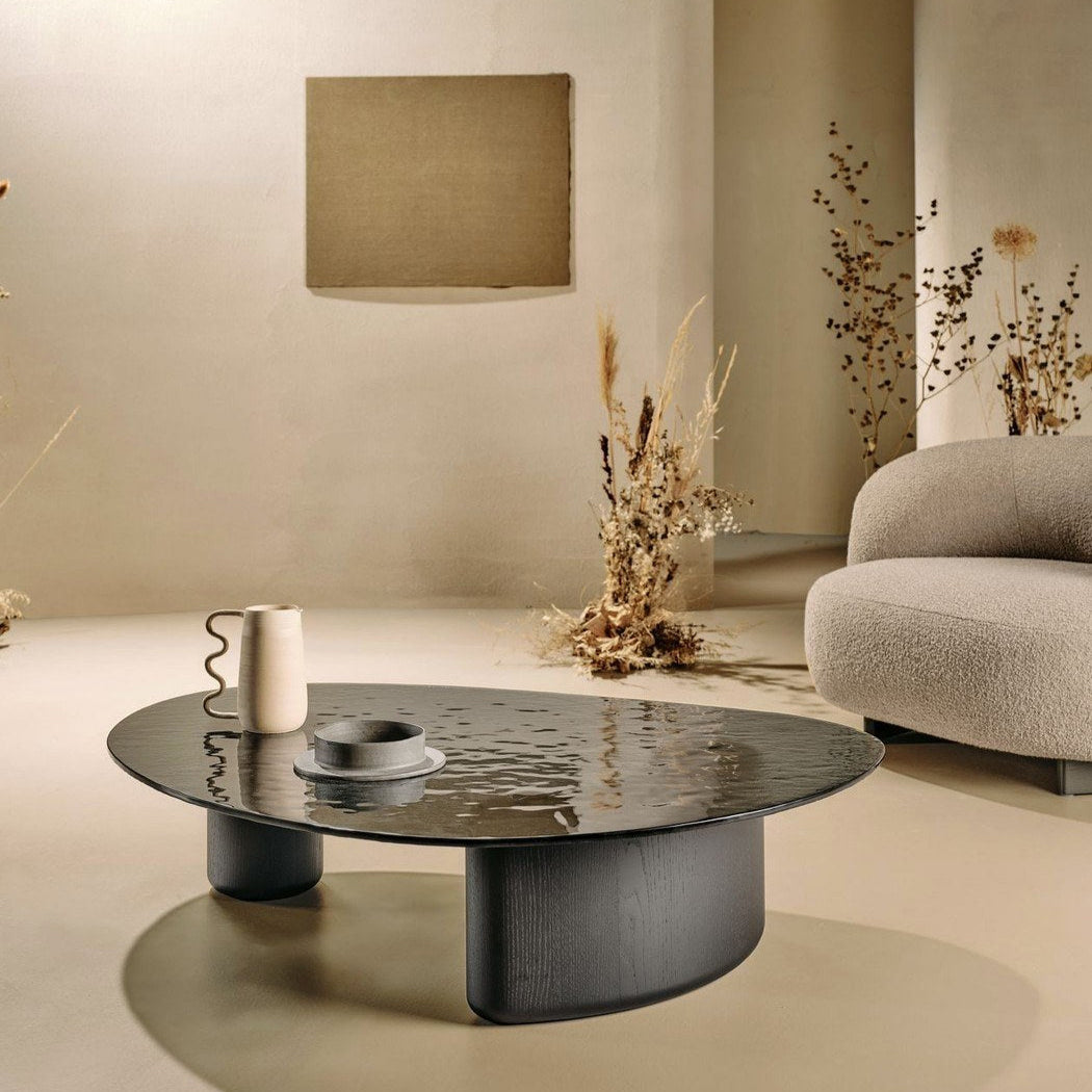 A Lake dohányzóasztal mesterien egyensúlyoz az organikus és geometrikus formák között, a természetes anyagok szépségével kiegészítve. Formája egyedi ívekkel illeszkedik a fa talapzatával, amelyet a természet ihletett. Kifinomult felületű, a laphoz használt anyagok szabadon konfigurálhatóak. Az eredmény egy kifejező esztétikai hatás, amely nem hagyja figyelmen kívül funkcionalitását. Elérhető üveg, kerámia és márvány asztallappal is.