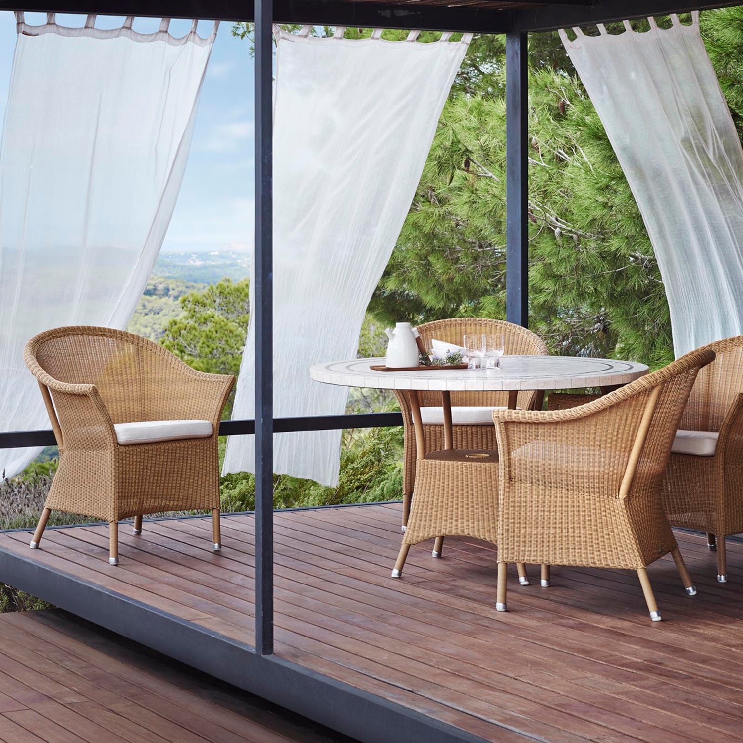 A Lansing kerti széket a régi klasszikus és időtlen szövésű bútorok ihlették. A szék kézzel szőtt Cane-line Weave® anyagból készült, horganyzott acél vázra. A modell kényelmes kialakítással, karfákkal, és üléssel rendelkezik. A Lansing szék minimális karbantartást igényel, mely vízzel és kefével tisztítható.