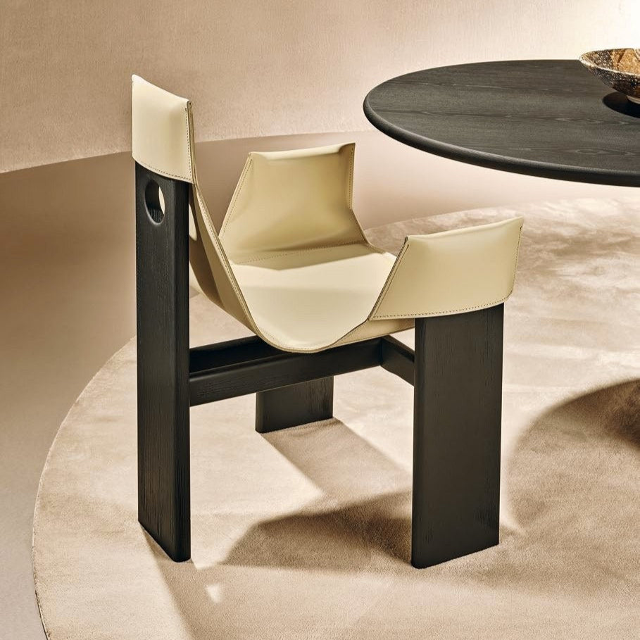 A Manta szék nagyszerű kifejezőereje ötvözi a fa alap lineáris tisztaságát a bőrrel borított ülés vizuális élményével, így egy hétköznapi tárgyból lényeges, szoborszerű karaktert varázsol, amely növeli a hozzá tartozó asztal esztétikai összhatását. Két magasságban elérhető az alábbi méretekben: 61x55x79 / 61x55x90 cm.