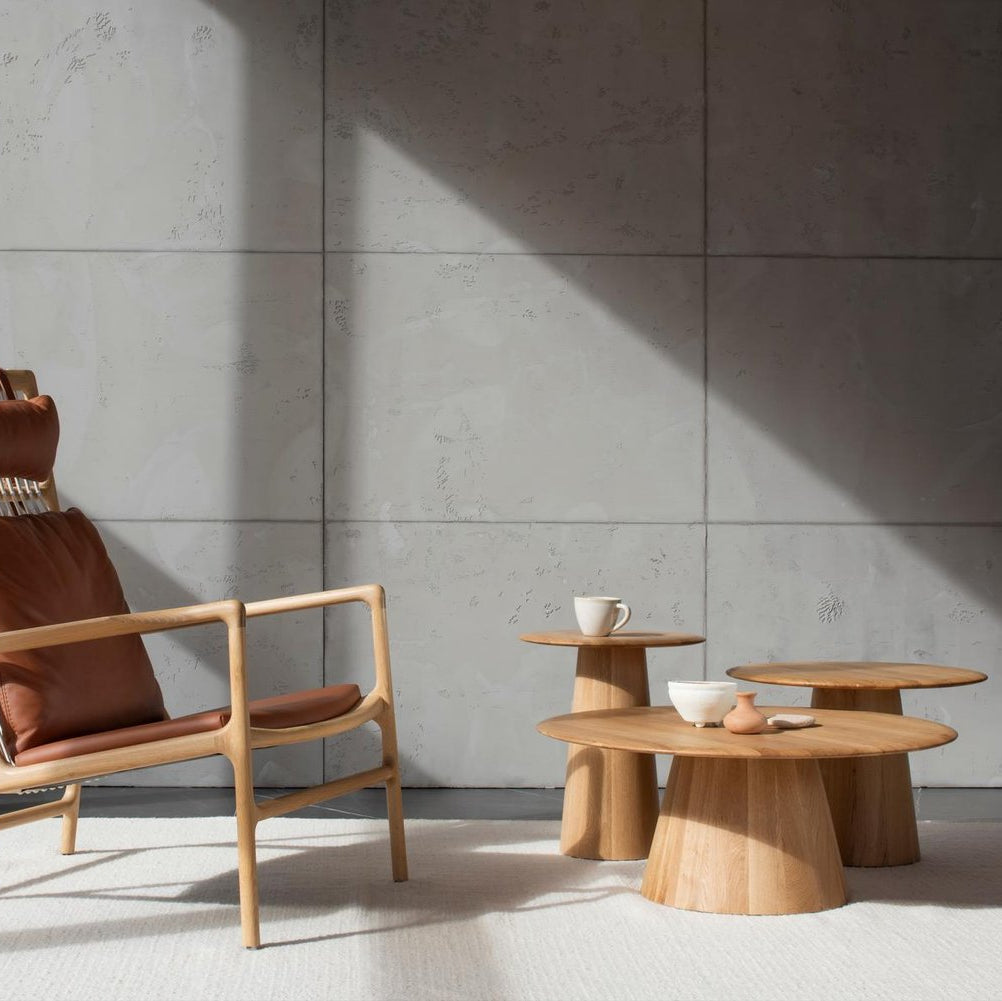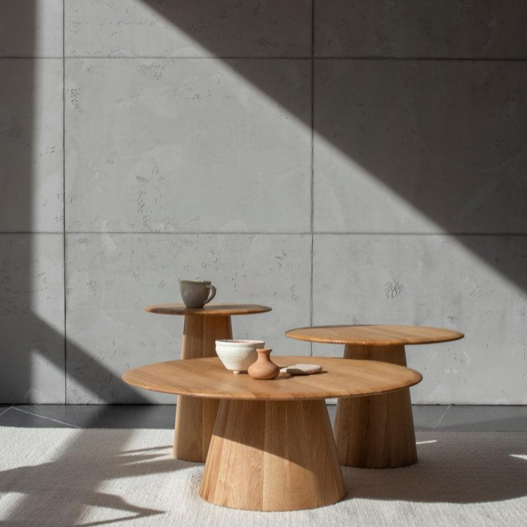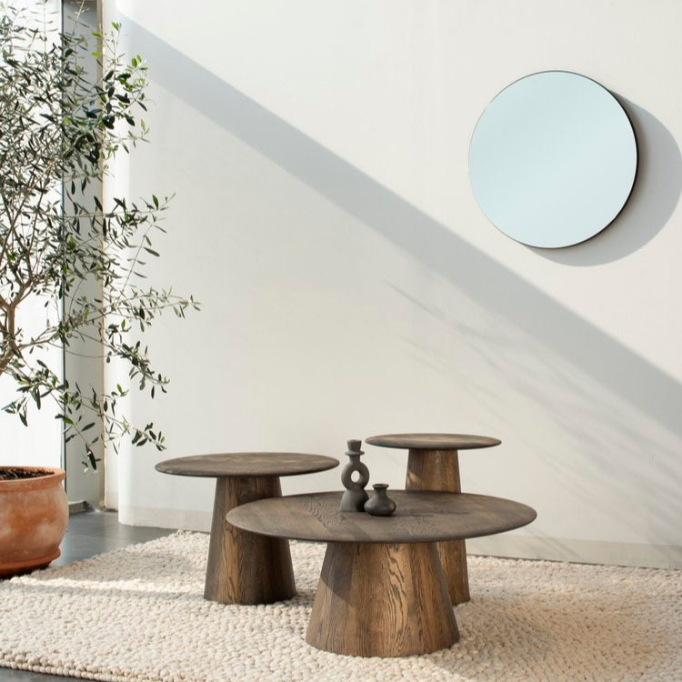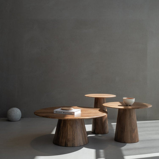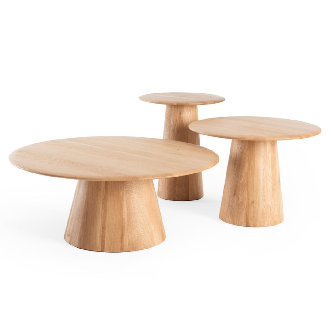 Fedezd fel a Mushroom asztalokat, amelyek mindegyike a kézművesség, a természet ihlette design és a kifinomult elegancia bizonyítéka. Ezek a tömörfa asztalok tiszta vonalakat és semleges esztétikát mutatnak, amelyek a nyugodt természeti formákat tükrözik, és mindezt látható illesztések nélkül érik el. A Mushroom asztalok művészete az elkészítésükben rejlik: a hagyományos hordókészítési és esztergálási technikák ügyes ötvözése, amely minden egyes darabnak egyedi, kézzel készített minőséget kölcsönöz. Tölgy, füstölt tölgy vagy pedig diófa színekben választhatod, a következő méretekben: Ø40x47 / Ø55x40 / Ø80x33 cm.