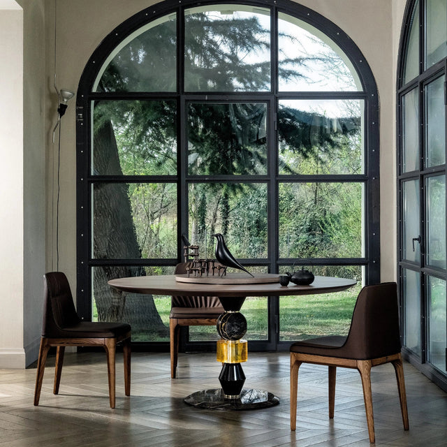 A Pandora egy többféle anyagból készült szerkezet, amelyet márvány, edzett üveg és lakkozott, esztergált fa jellemez. Nagy esztétikai érték, amelyet az asztal szerves részét képező, általad választott elemek textúrája határoz meg. Többféle választási lehetőséggel, kombinációval és opcionálisan középső forgó tállal, avagy Lazy Susannal is kapható. Elérhető méretek: Ø140x75 / Ø160x75 cm.