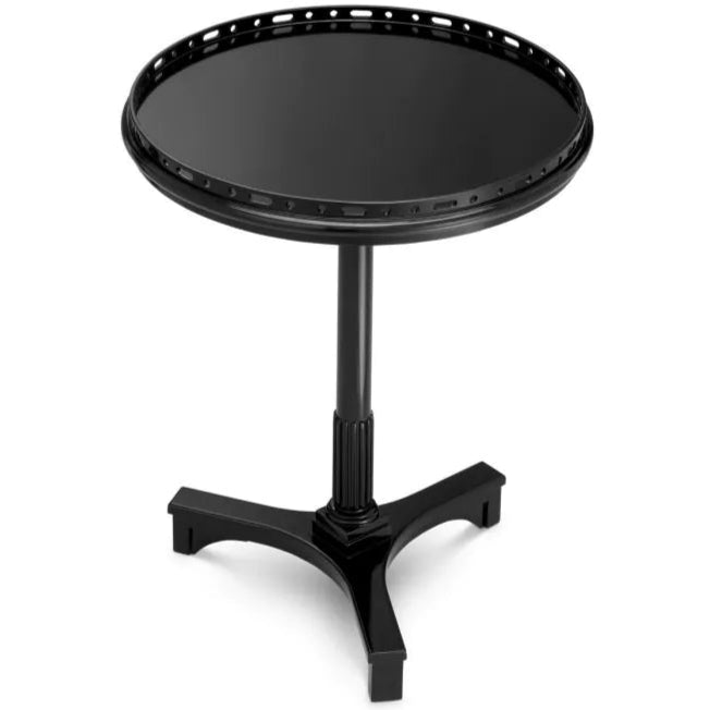 A Met x Eichholtz bemutatja a Roentgen lerakóasztalt, amely finom utalás a 18. századi kézművességre, merész fekete kivitelben újragondolva. Áttört peremével és a barázdált oszloptalppal ez a teljesen fekete változat visszhangozza történelmi elődjének kecses arányait és zseniális funkcionalitását. Bár színében egyszerűsödött, az asztal megőrizte időtálló építészeti eleganciáját.