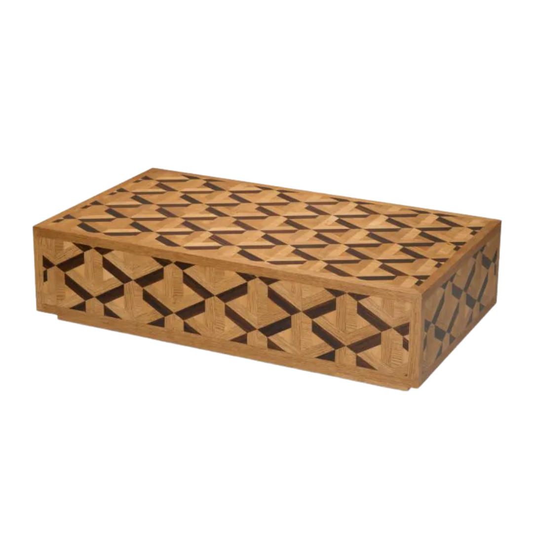 Fedezd fel a kifinomult eleganciát a Rubicon dohányzóasztallal, amely meleg, természetes tónusú, jellegzetes intarzia mintával büszkélkedhet. A lézerrel vágott furnércsíkokat gondosan kézzel összeállítják, préselik, ragasztják és zökkenőmentesen felviszik a felületre – ez a gondos folyamat teszi ezt a darabot a valódi kézművesség megtestesítőjévé. Sima felülete és tapintása luxus akcentussá teszi, amely a finom művésziességet és a kortárs designt ötvözi.