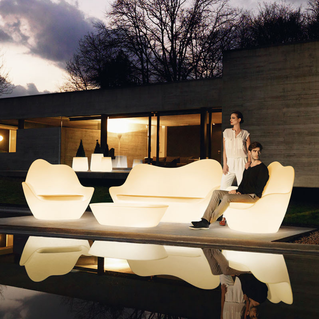 A többféle színben elérhető Sabinas kerti kanapé polietilén gyantából készült, és lágy, lekerekített vonalakkal rendelkezik. Egyedi, kissé aszimmetrikus megjelenése, és modern kialakítása miatt garantáltan kiemelkedő bútordarabja lehet kertednek, teraszodnak, vagy erkélyednek is. Különlegessége, hogy az ICE WHITE színű változathoz beépített LED világítás is rendelhető.