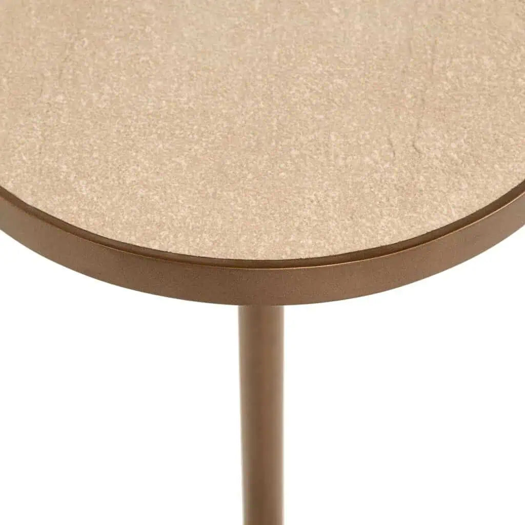 A Selly lerakóasztal ötvözi az eleganciát a klasszikus megjelenéssel, így könnyedén illeszkedik minden belső térbe. Bézs színű porcelán lapját gyönyörűen kiemeli a bronz színű szegélye, a vékony lába, és a kerek talpa. Felülete elegendő helyet kínál a italok, könyvek, vagy dekoráció számára is, így sokoldalú, és praktikus eleme lehet otthonodnak.