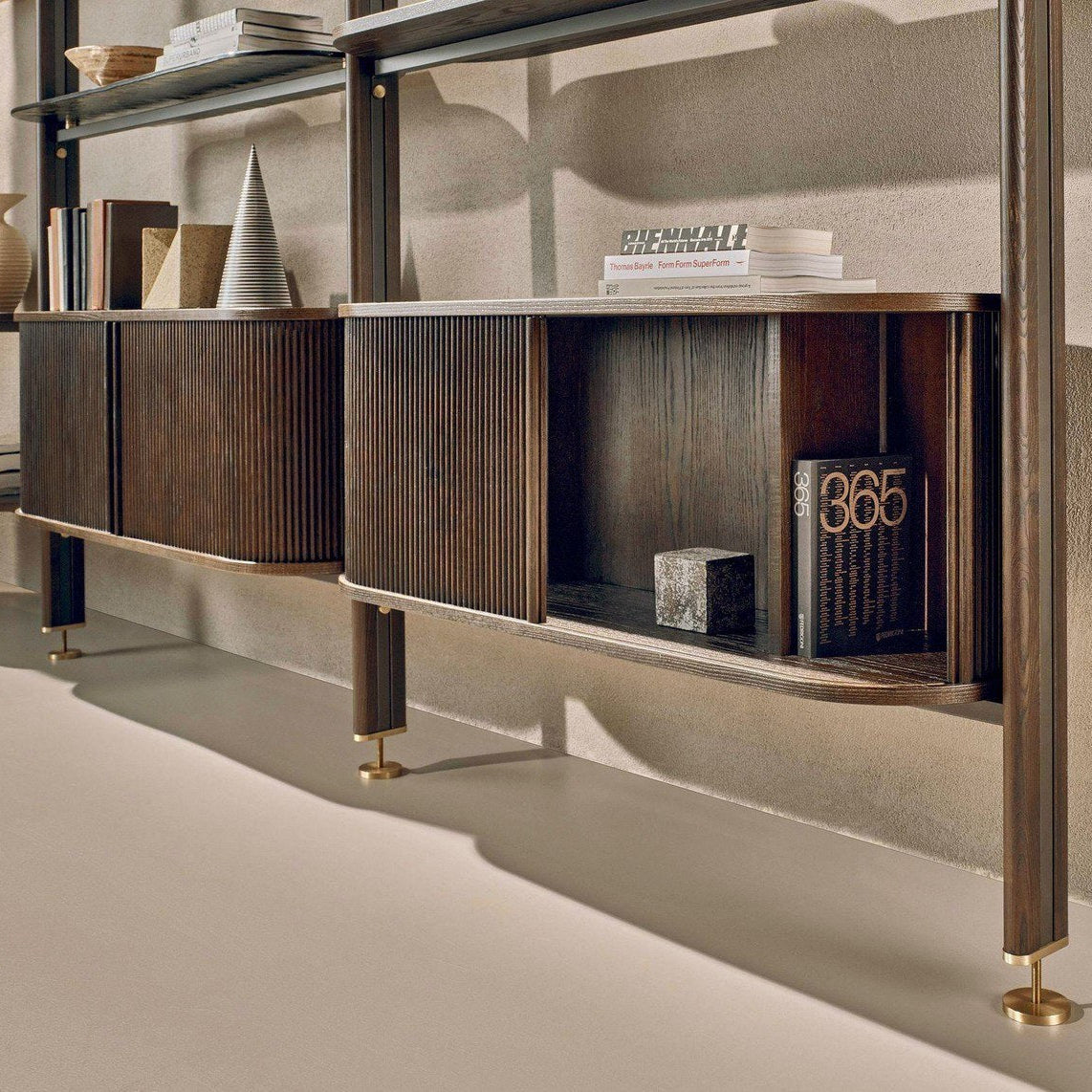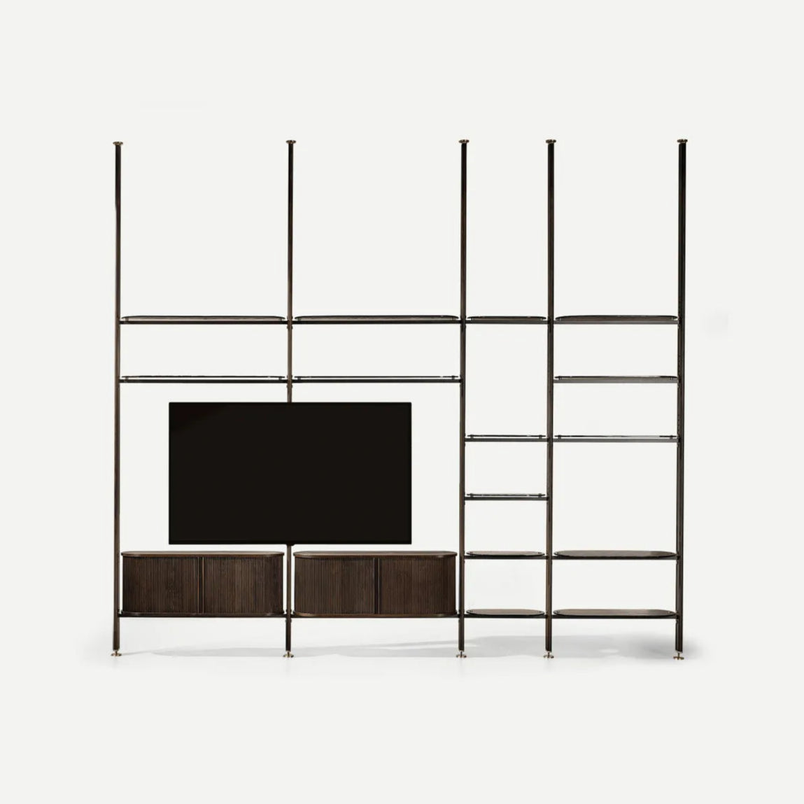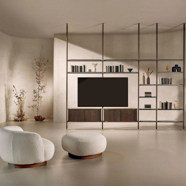 A Stem egy modern és stílusos polc, ami bőséges tárolóhelyet, dekorációs elemet és kifinomult stílust biztosít otthonod minden azon pontján, ahogy szeretnél egy látványos polcrendszert elhelyezni. Különböző méretekben és polcokkal választhatod, aminek köszönhetően a legkülönbözőbb helyiségekben is kiválóan mutathat. A sokoldalú konfigurációs lehetőségeknek köszöntően akár TV állványként is funkcionálhat. Alsó, zárható rekeszei bőséges helyet biztosítanak személyes kiegészítőid számára. Elérhető méretek: 128x36.5x240 / 486x102x280-295 cm.
