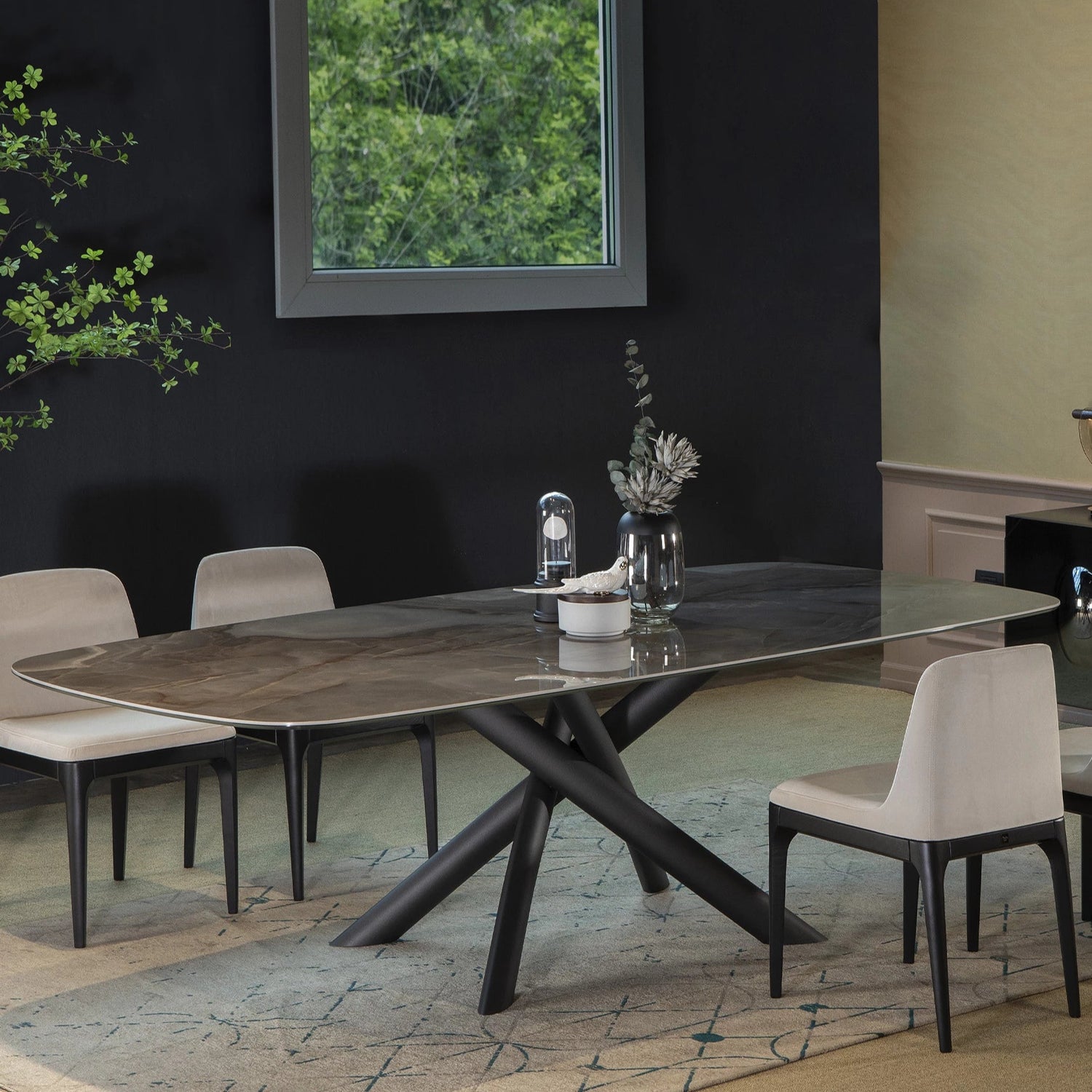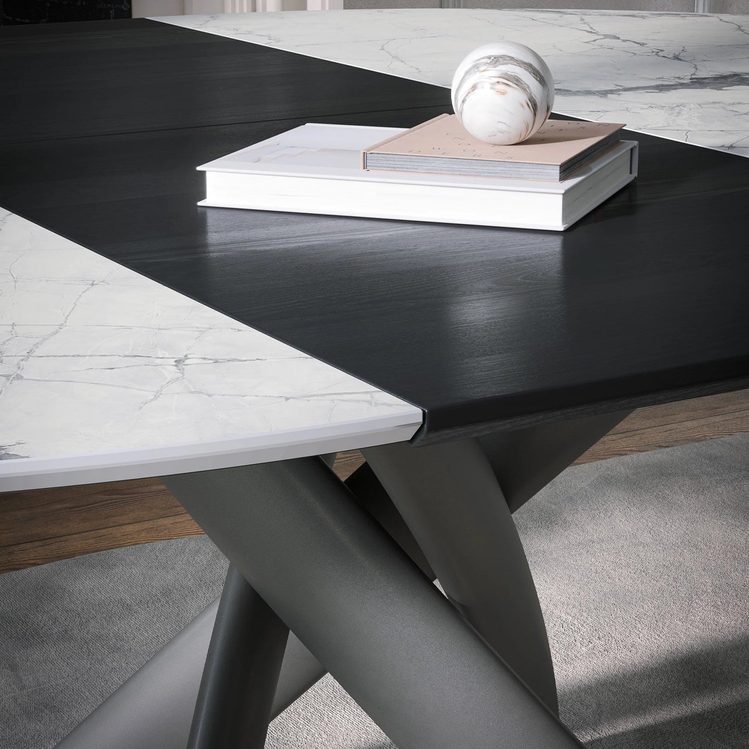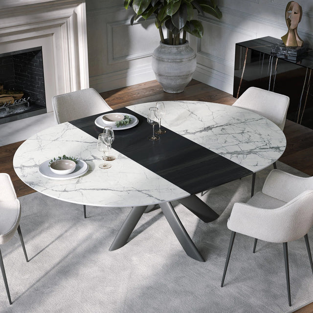 A Style, vagyis a stílus a különlegessége ennek az új és exkluzív asztalnak, amely a tagolt esztétikával tűnik ki, egy olyan unikummal, amely a pazar alap egymásba fonódó formáit ötvözi, szabadon választható asztallappal mint például kalapált üveg, porcelán vagy fa lapok kifinomult kialakításával. Fix vagy bővíthető kivitelben elérhető, számtalan méretben, egyedileg konfigurálható.