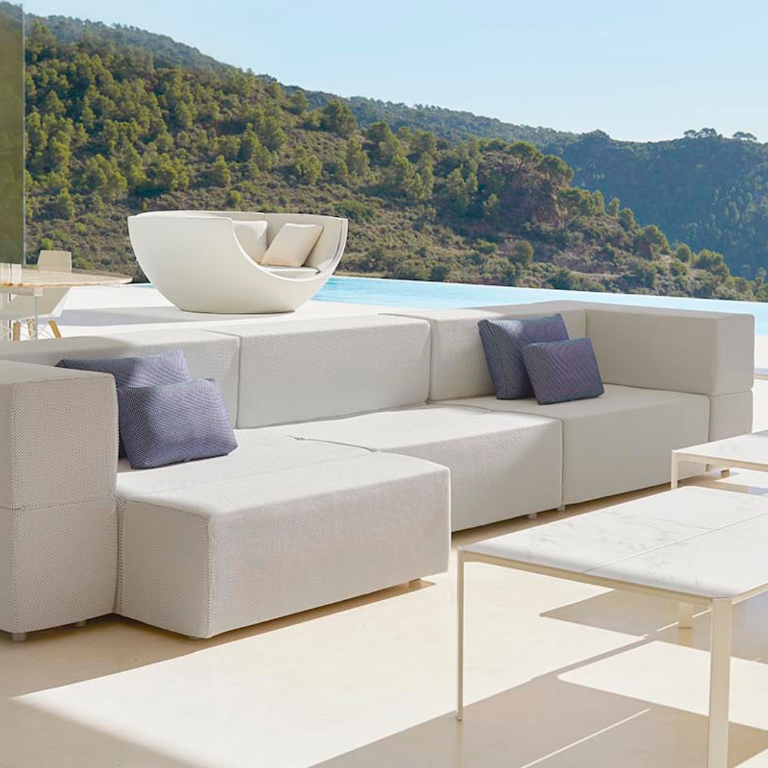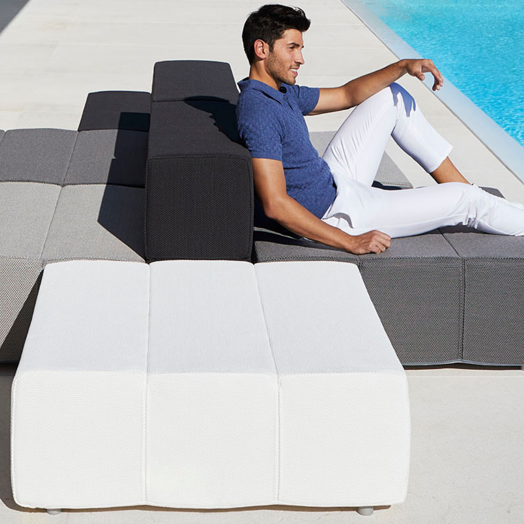 A Tablet kerti moduláris kanapé rugalmas poliuretán habból készült, és modern megjelenéssel rendelkezik. Teljesen kárpitozott, kizárólag kültéri használatra tervezett szövetekkel, amelyek mégis megőrzik a beltéri anyagok stílusát és kényelmét. Ezek a szövetek széles színválasztékban kaphatók, amelyek lehetővé teszik a teljesen egyedi dizájnt.